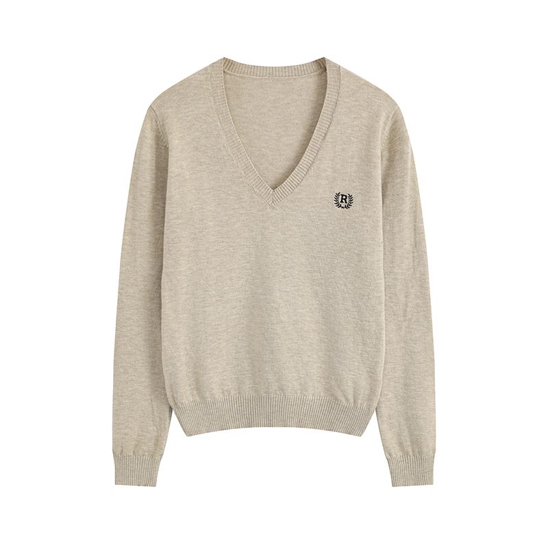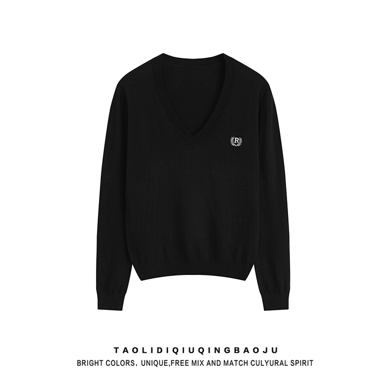 Japanese Style Retro Alphabet Embroidered V-neck Sweater Women's 2025 New Preppy Style Slim Looking Easiest for Match Student Knitwear