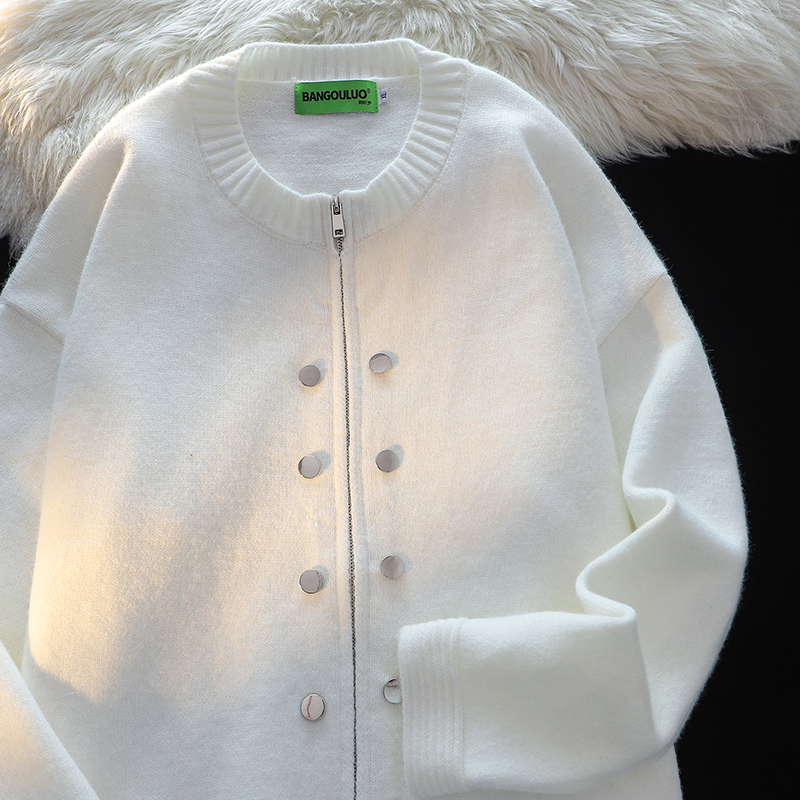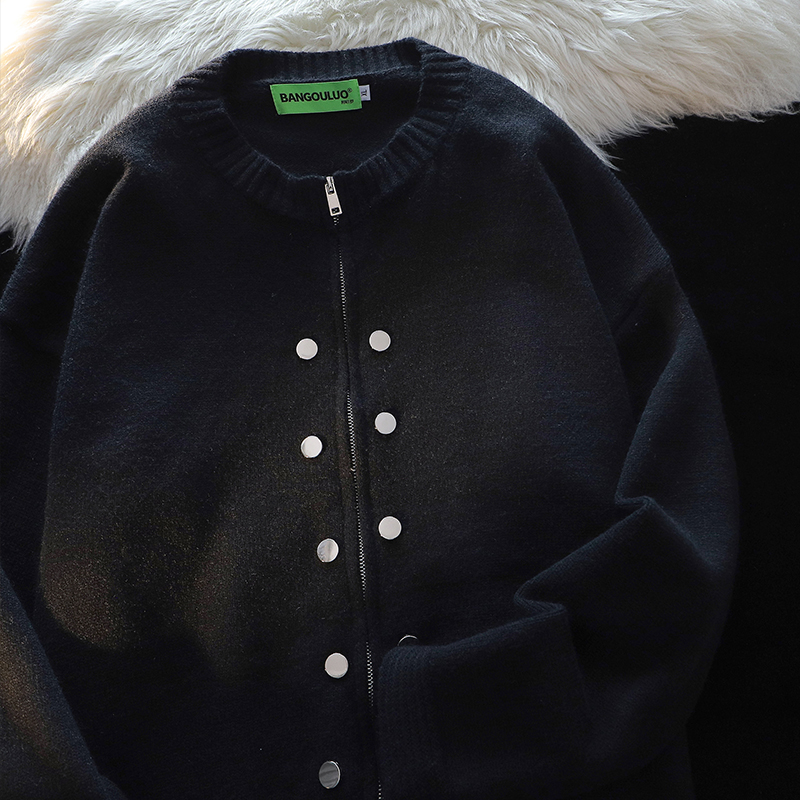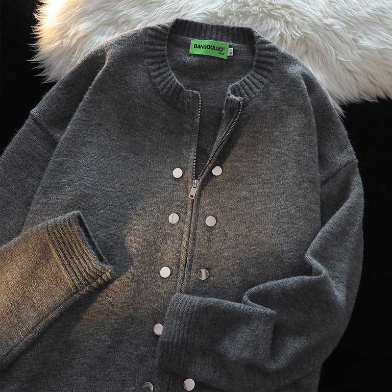 Japanese-Style Retro Pure Color Zipper Cardigan Sweater Female Winter Comfortable Loose Casual Couple Outfit Knitwear Outwear