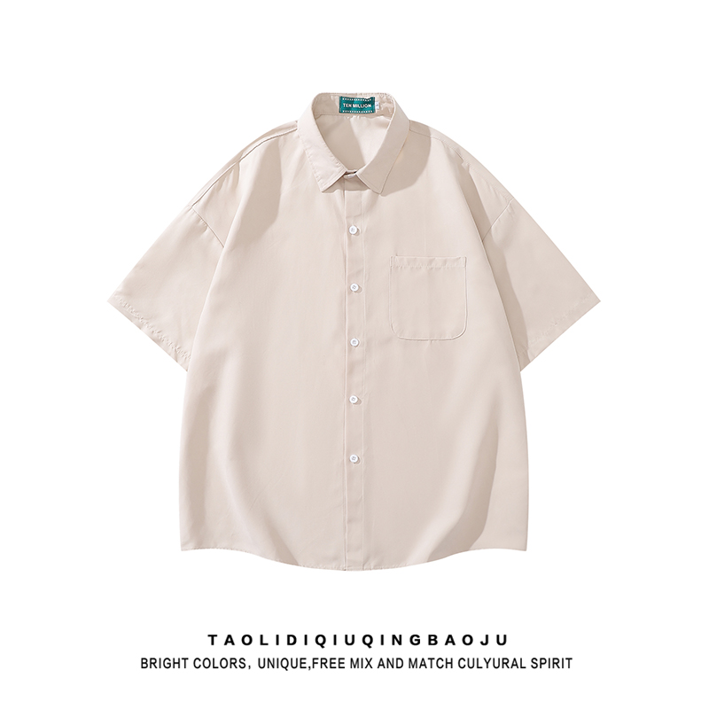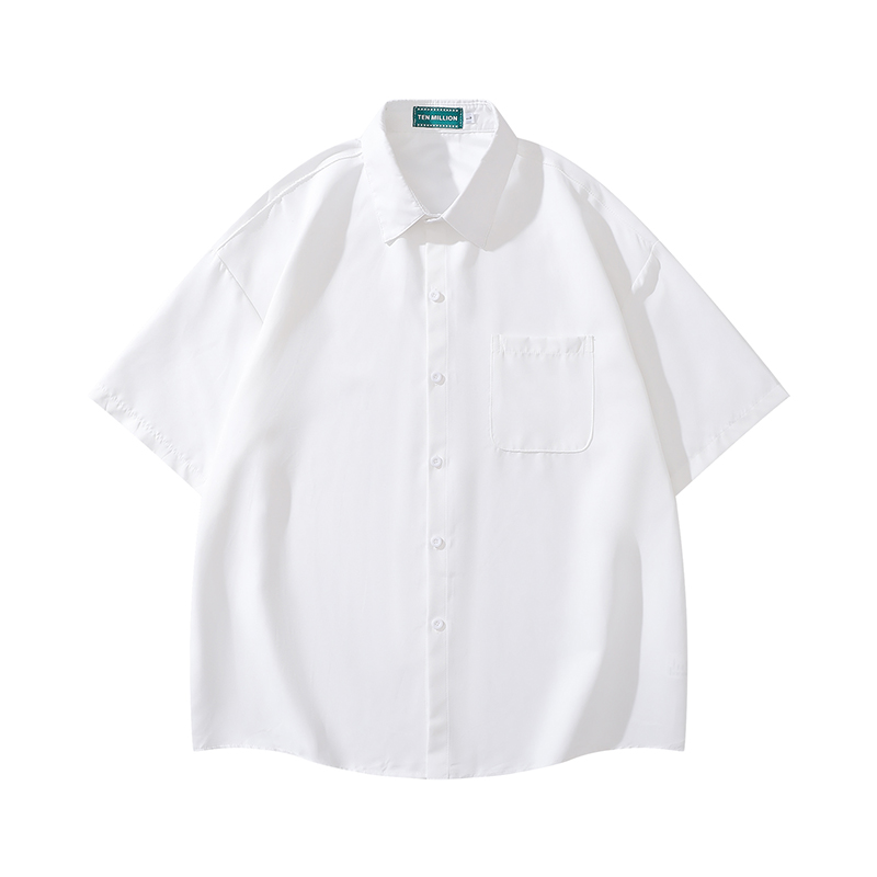 Japanese Style Simple Pure Color White Shirt Short Sleeve Women's Summer Loose Casual Basic Style Easiest for Match Couple's Half Sleeve Shirt