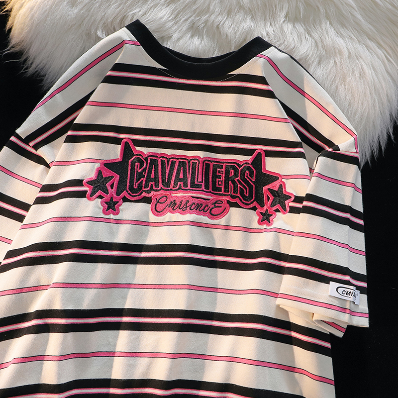 Japanese Style XINGX Color Matching Women's Summer Casual Half Sleeve Embroider