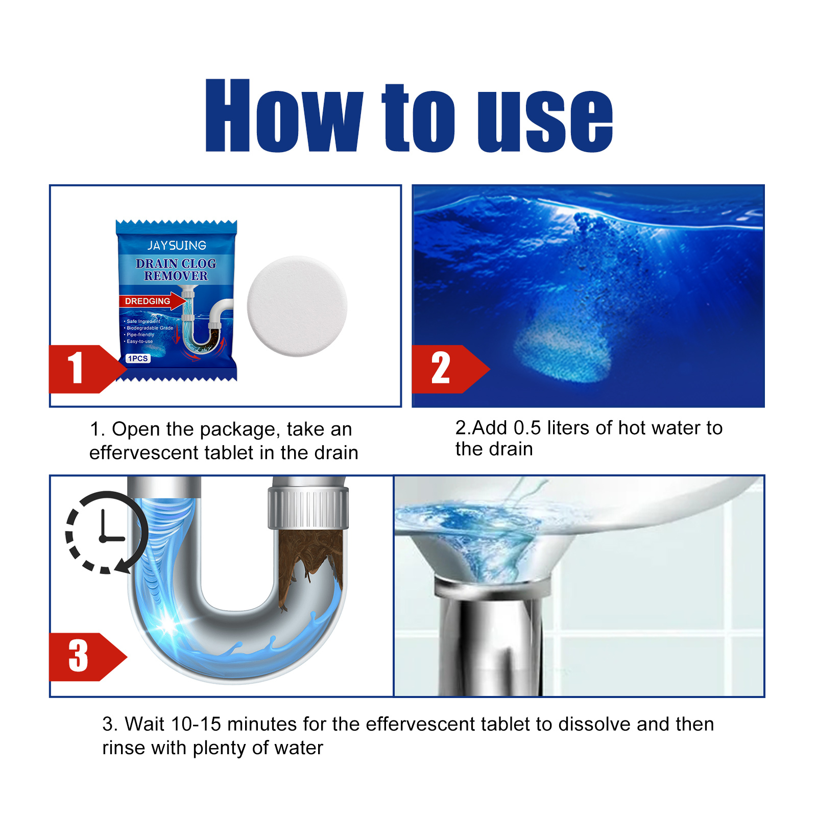 Jaysuing Drain Unclogging Effervescent Tablets - Powerful Debris Dissolver, Fresh & Odor-Free Drains