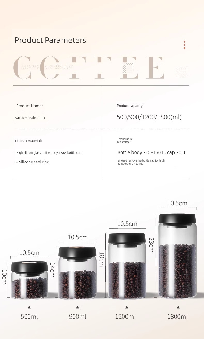 Jie'an Xi Coffee Beans Storage Jar Vacuum Sealed Jar Glass Tangerine Peel Milk Powder Storage Tank Tea Storage Jar