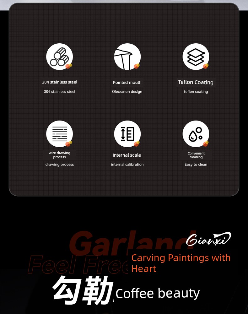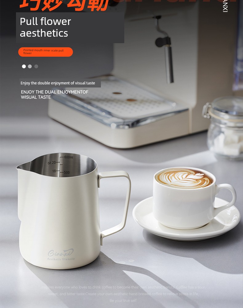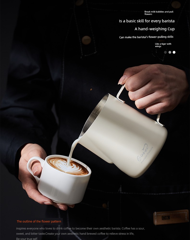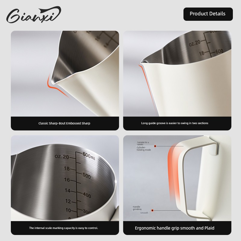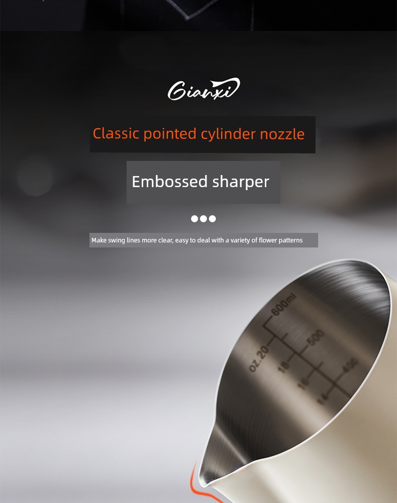 Jie'an Xi Frothing Pitcher Coffee Pointed Steam Pitcher Milk Frothing Cup Garland Handy Gadget Stainless Steel Professional Appliance Milk Cylinder