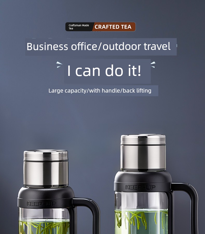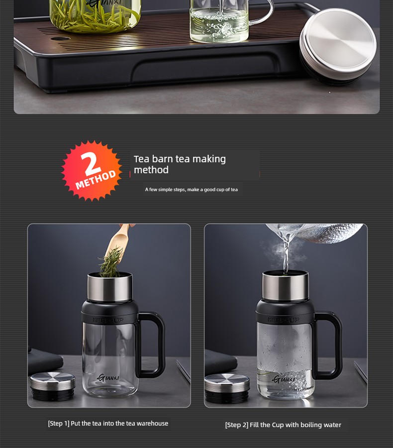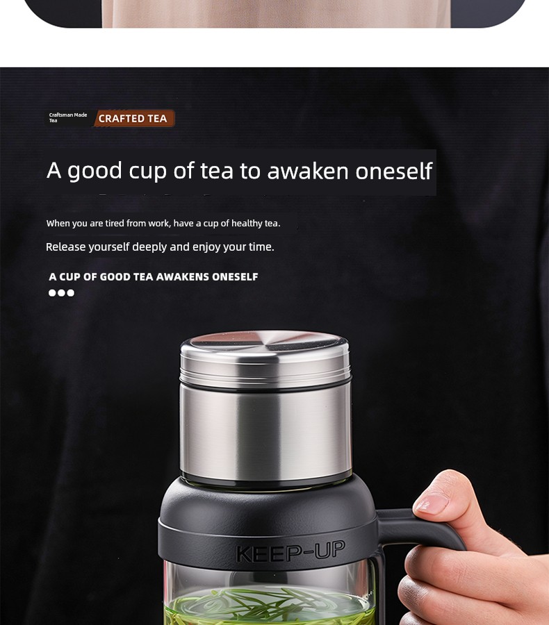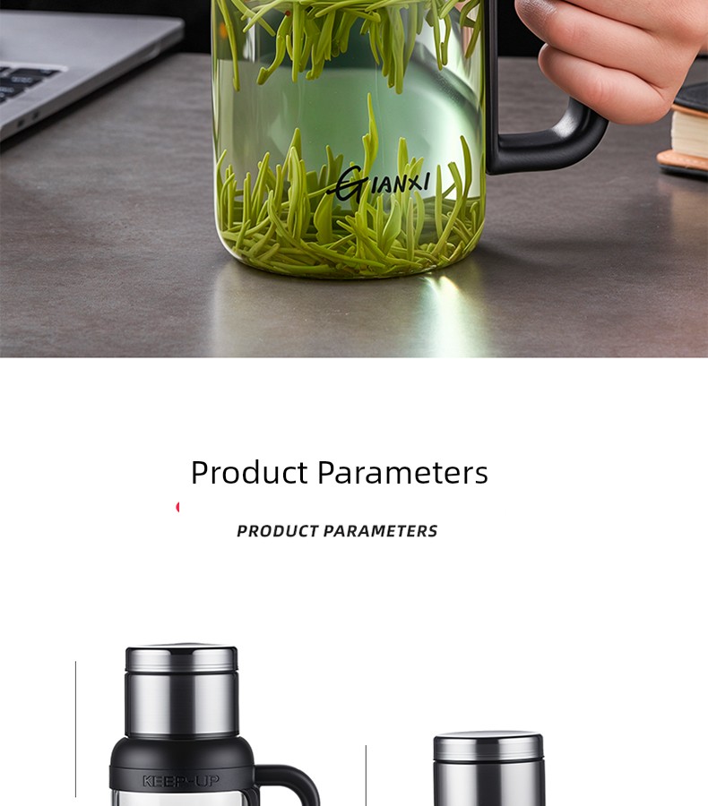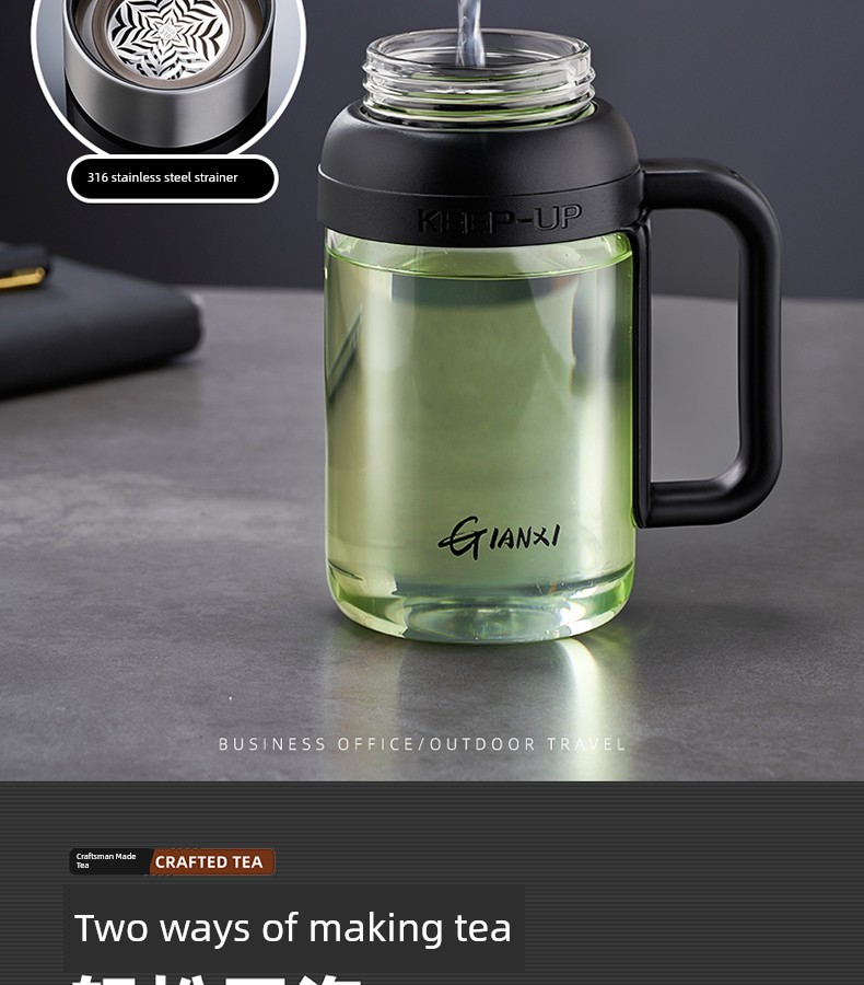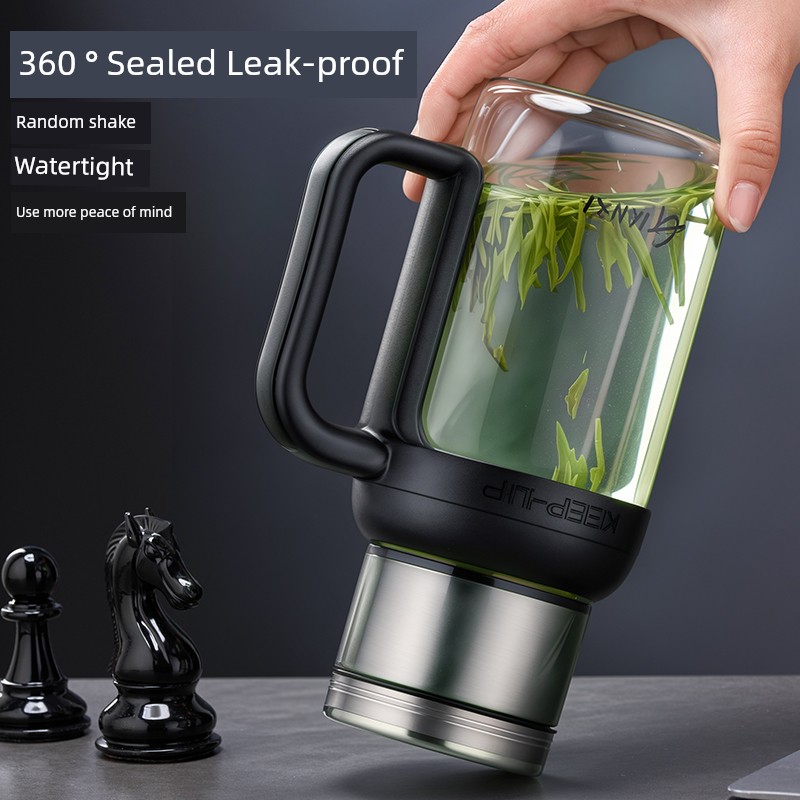 Jie'an Xi Glass with Handle Tea Cup Tea Water Separation Drinking Cup Office For Home Large-Capacity Water Cup