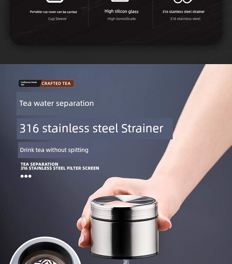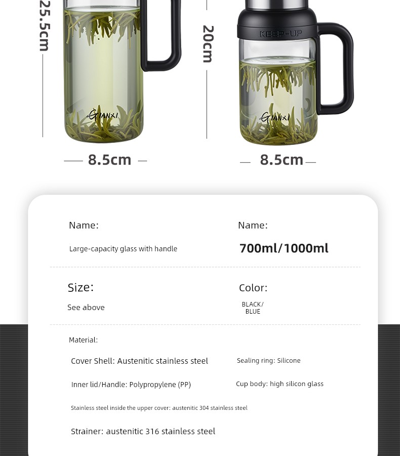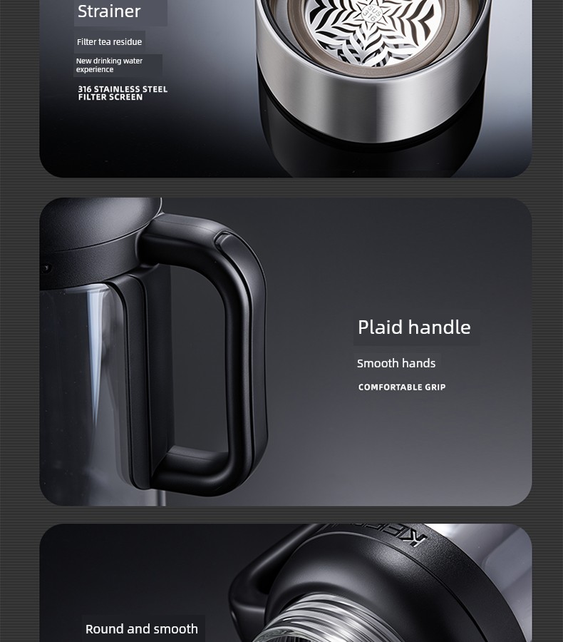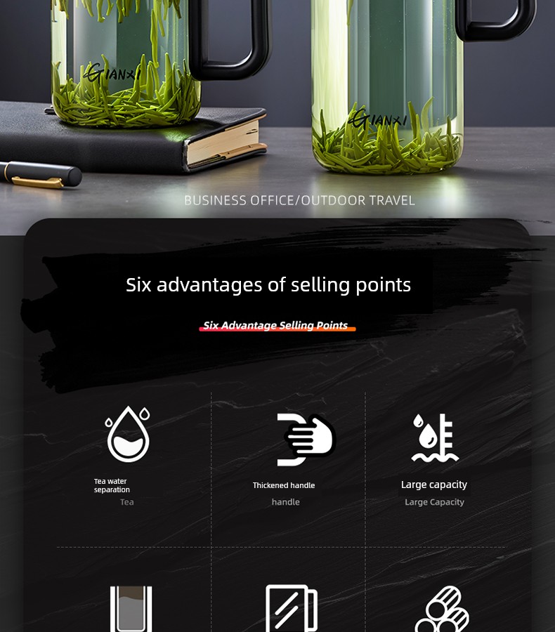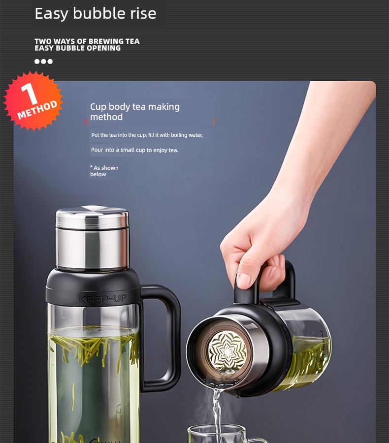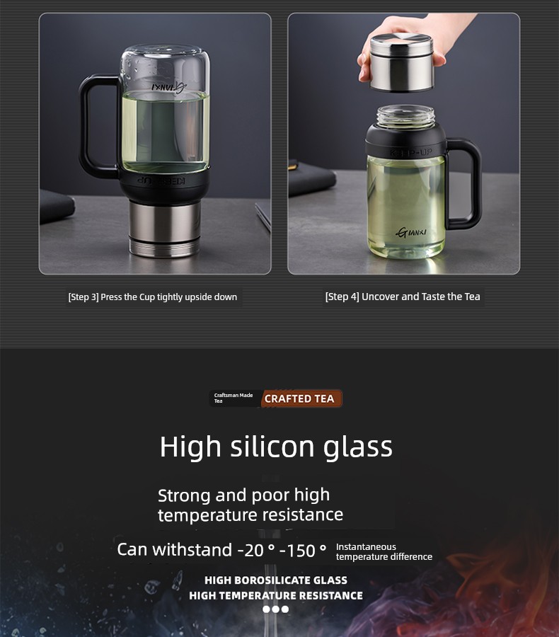 Jie'an Xi Glass with Handle Tea Cup Tea Water Separation Drinking Cup Office For Home Large-Capacity Water Cup