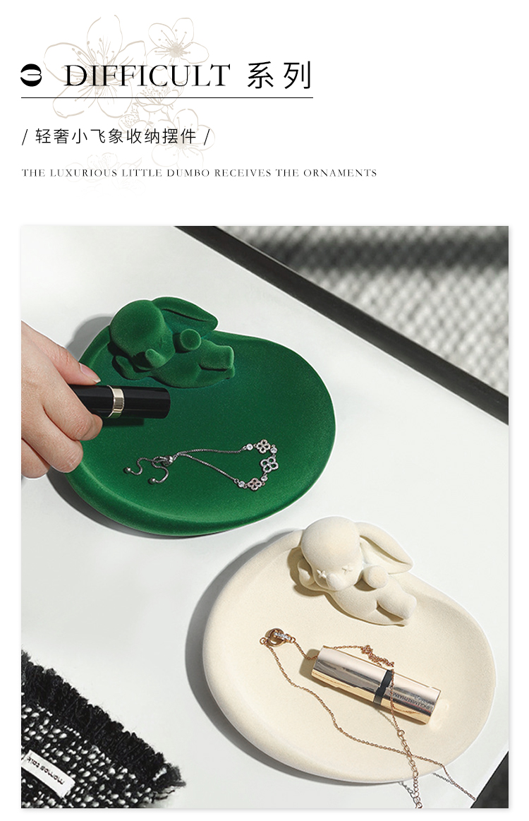 Jojo's L. Pd. Difficult. Storage Rack Accessible Luxury Flocking Dumbo Storage Jewelry Plate | Hard to Describe
