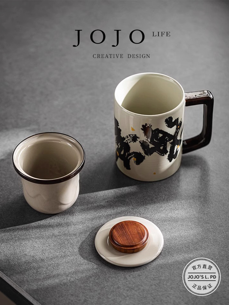 Jojo's L. Pd. GATT. Ceramic Tea Water Separation Tea Cup Hand Painted with Cover Strain Cup | Re-Pass