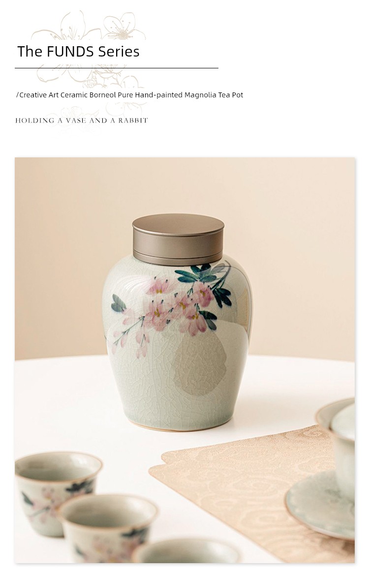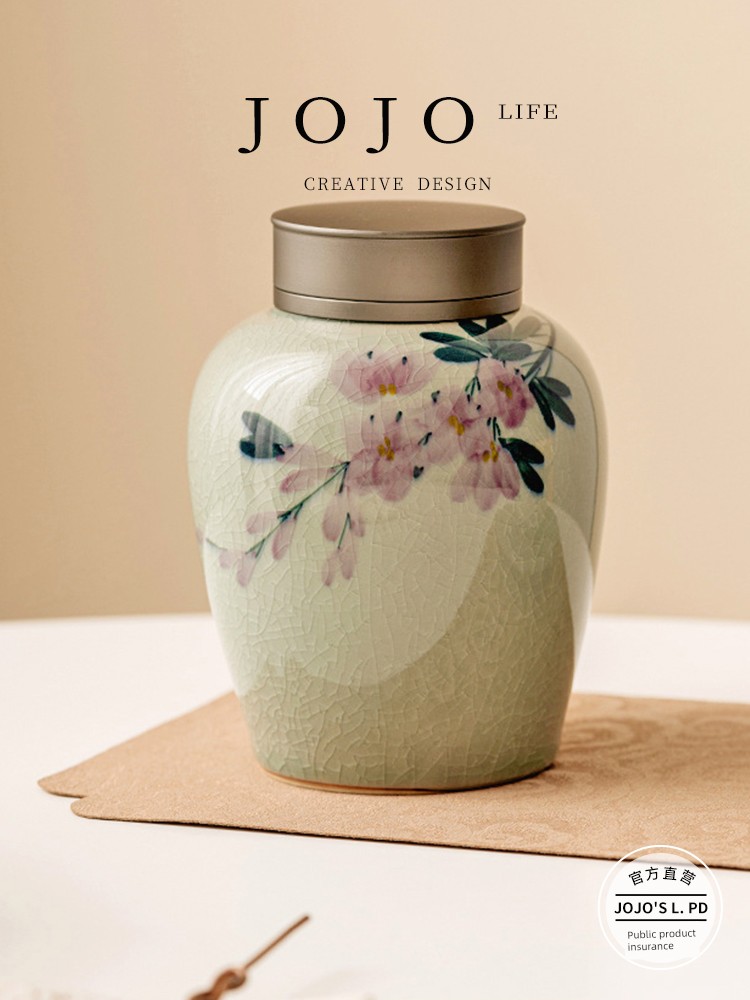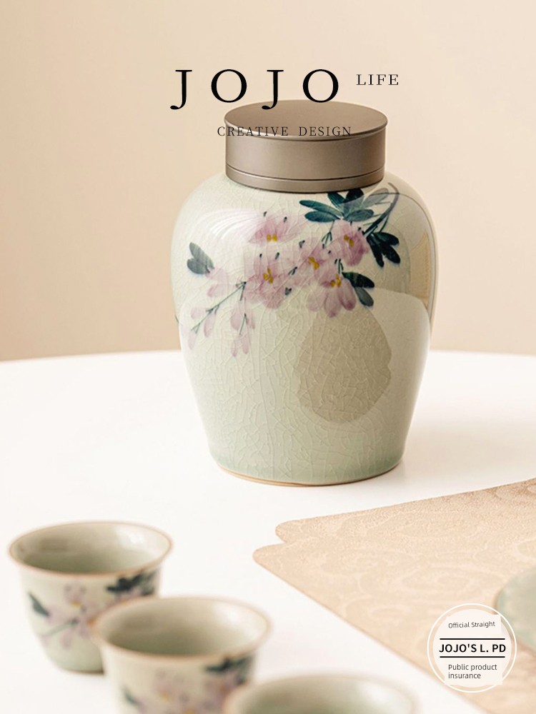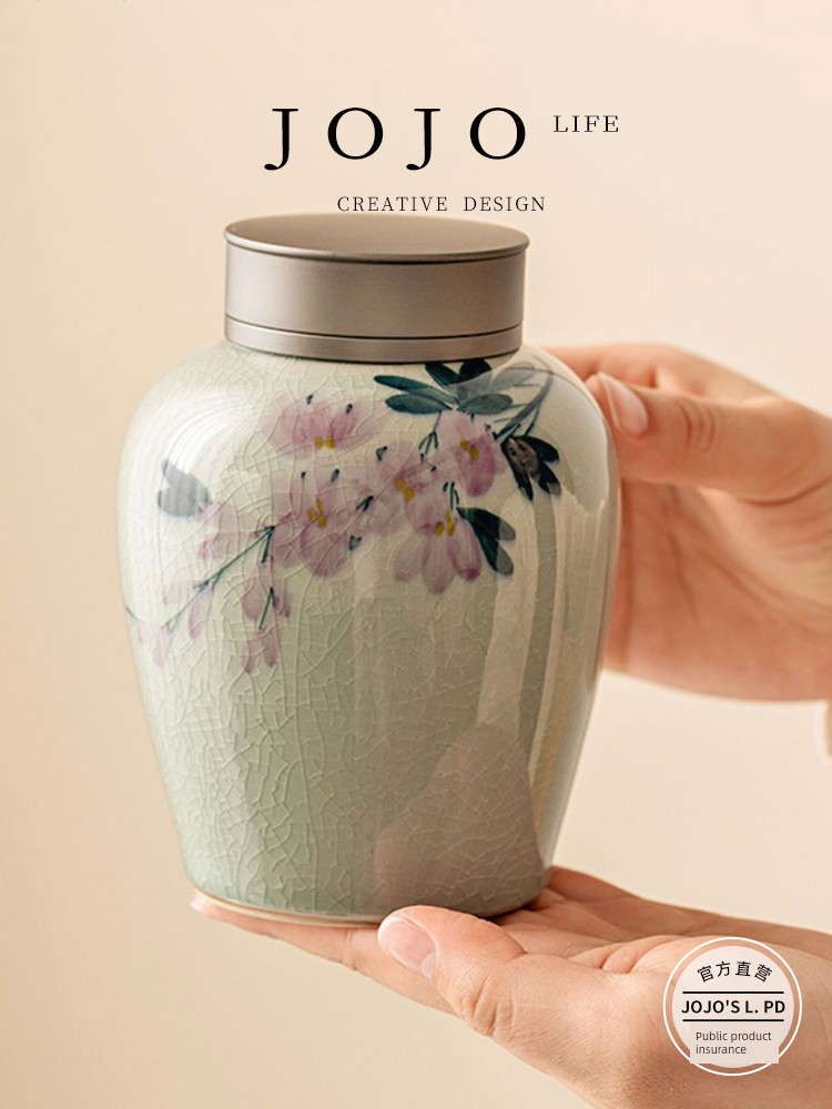 Jojo's L. Pd. Miscellaneous. Tea Jar Borneol Glaze Pure Hand Drawing Ceramic Portable | Miscellaneous