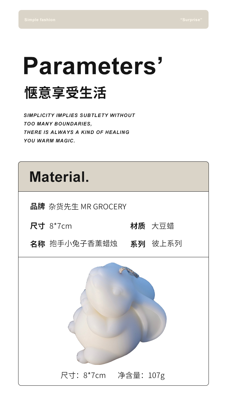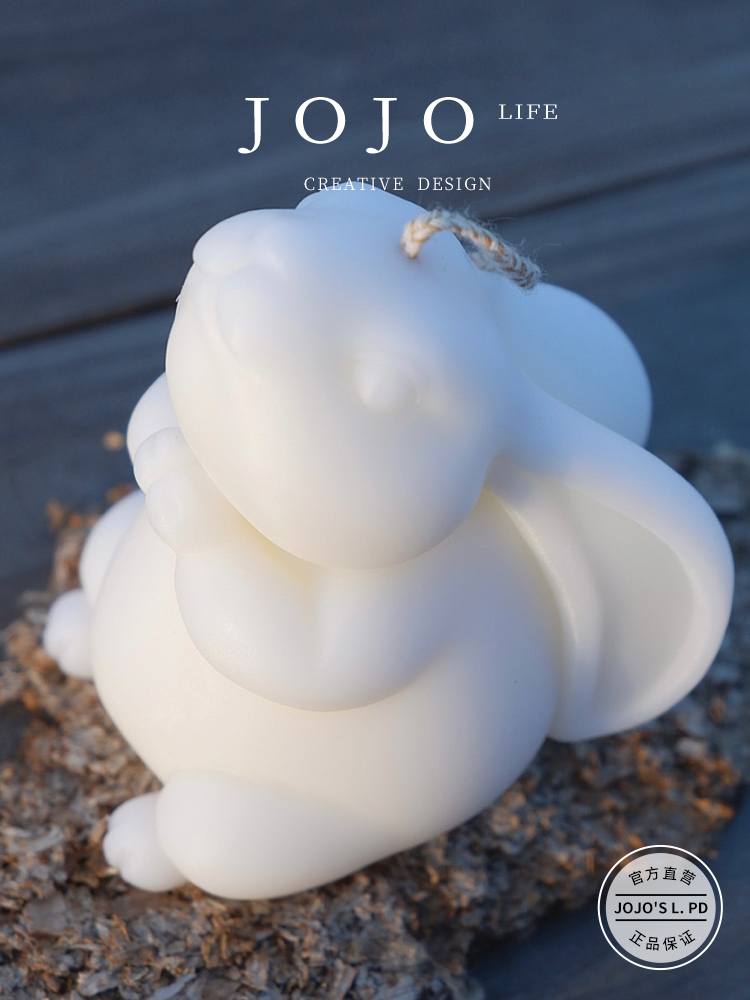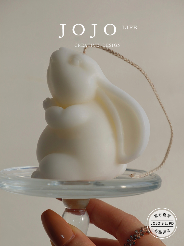 Jojo's L. Pd. Mr. Grocery. Aromatherapy Candle Holding Hand Bunny Natural Soy Wax Fragrance | on the Other Side