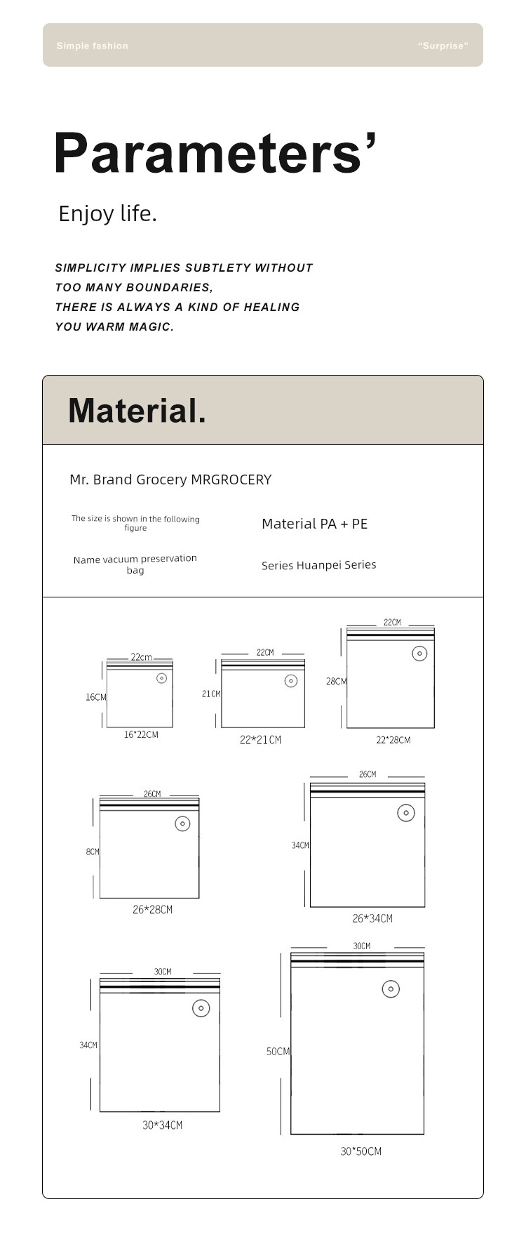 Jojo's L. Pd. Mr. Grocery. Food Vacuum Compression Bag Lines Vacuum Bag Sealed | Huanpei