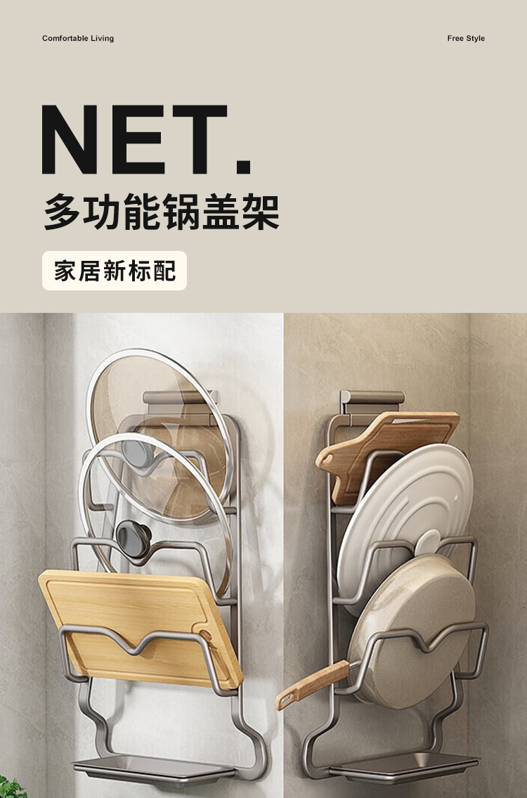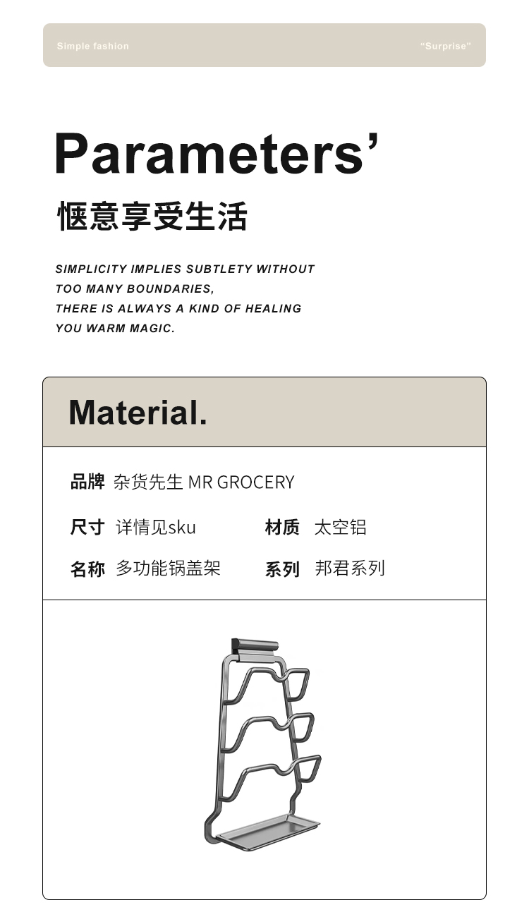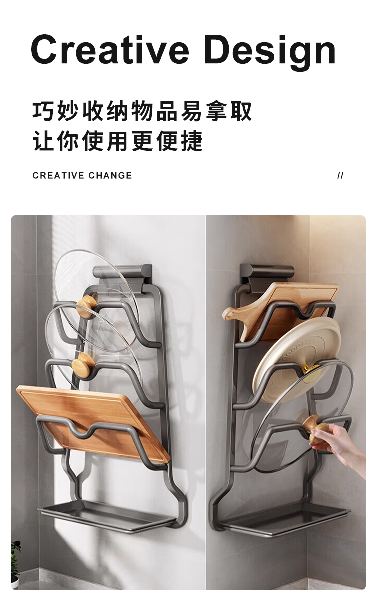 Jojo's L. Pd. Mr. Grocery. Kitchen Pot Lid Shelf Multi-Functional Placement Device Wall-Mounted | Bangjun