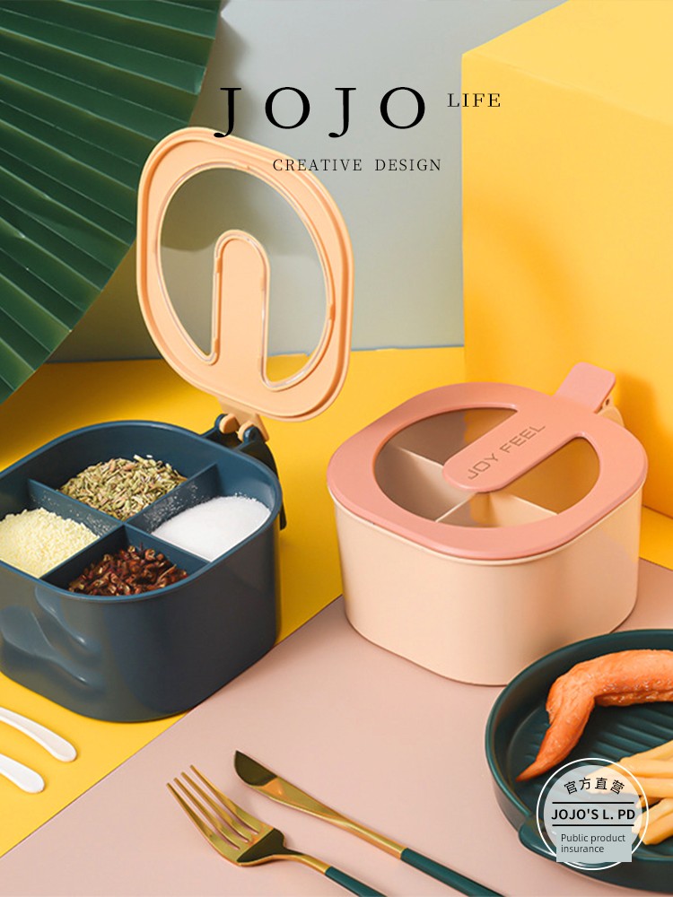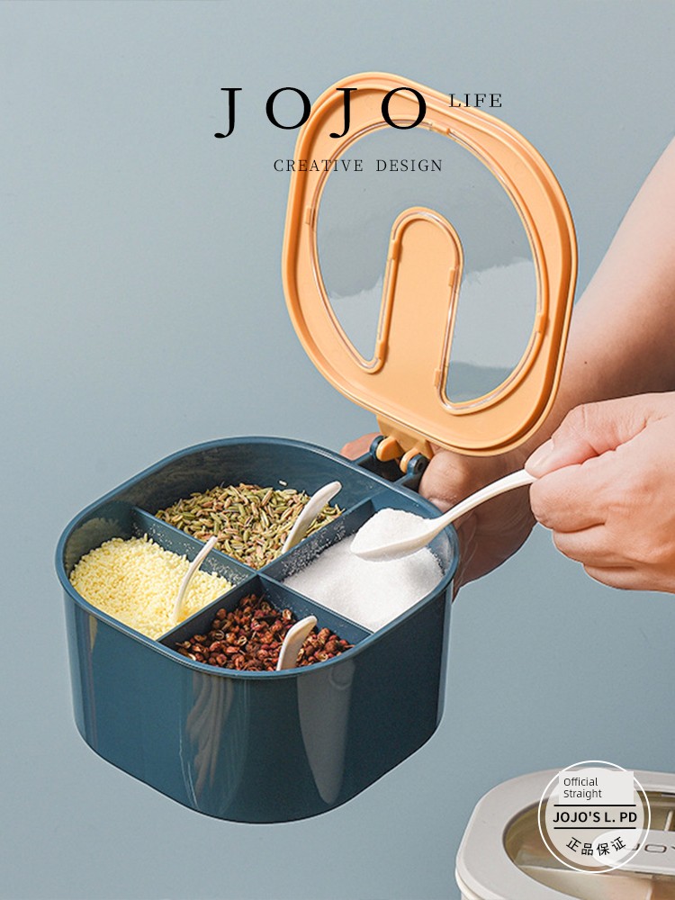 Jojo's L. Pd. Mr. Grocery. Kitchen Supplies Salt Jar For Home Multi-Grid Storage with Lid Seasoning | Tong Xuan