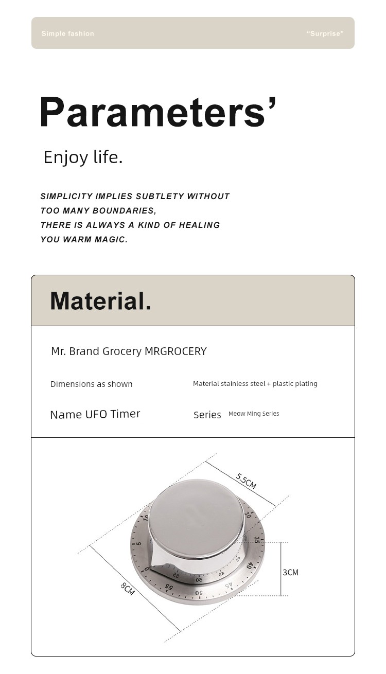 Jojo's L. Pd. Mr. Grocery. Kitchen Timer UFO Mechanical Stainless Steel Alarm Clock | Meow