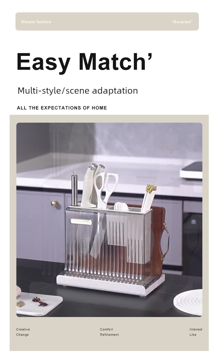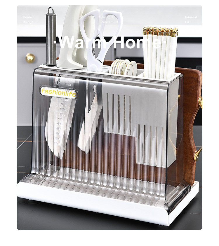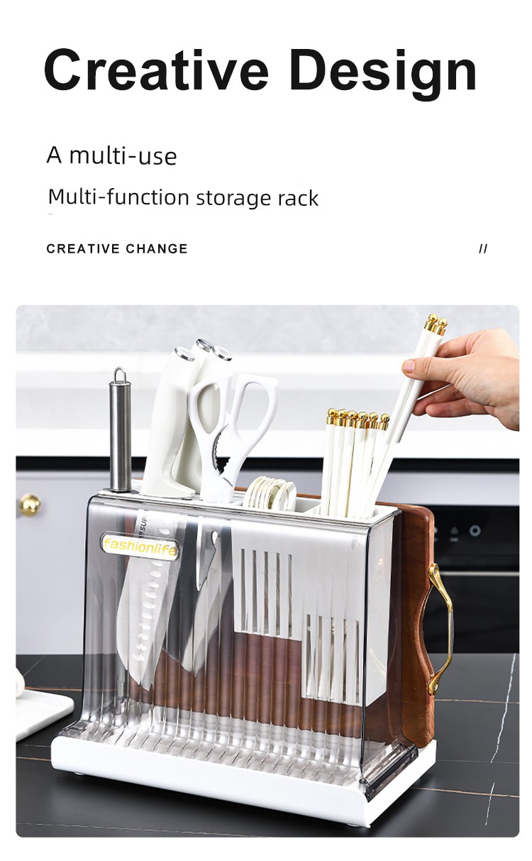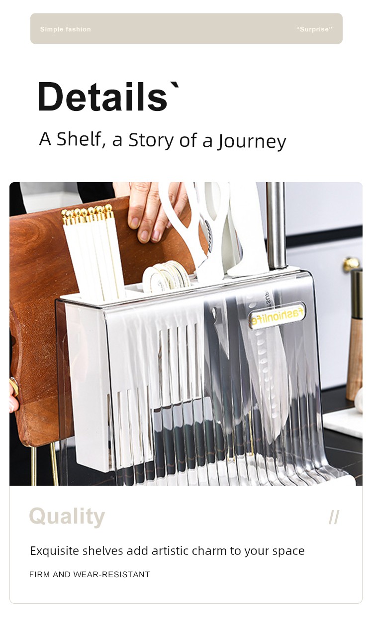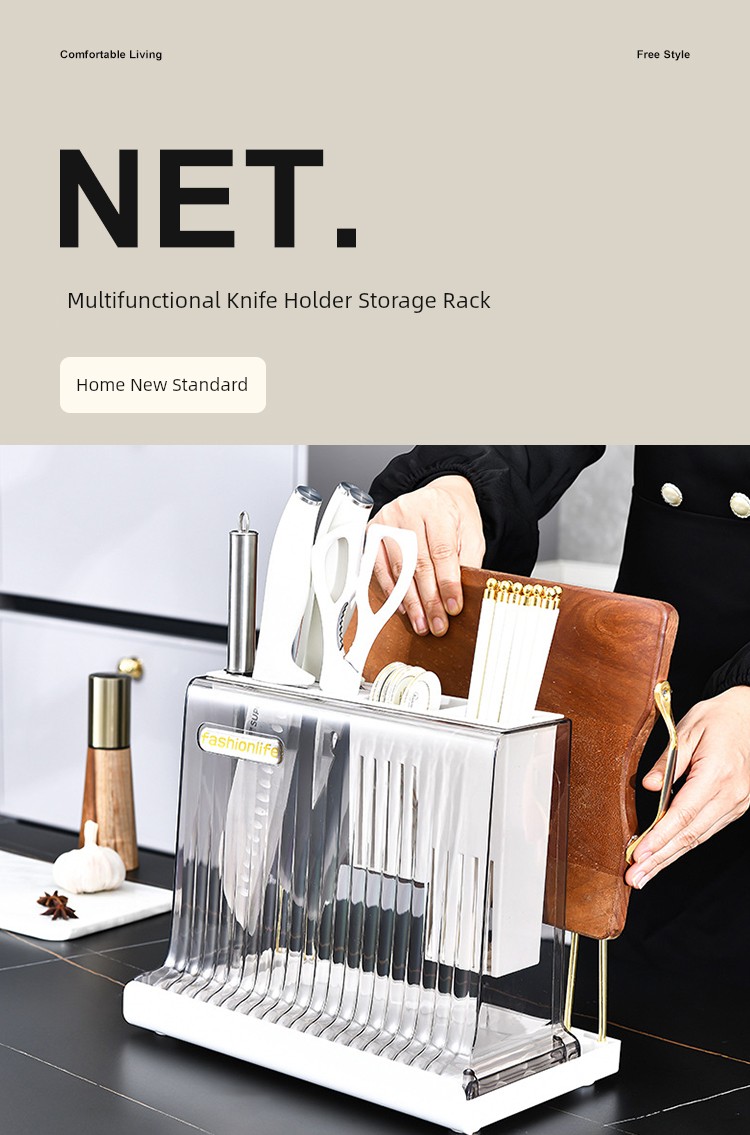 Jojo's L. Pd. Mr. Grocery. Storage Rack Accessible Luxury Multi-Function Knife Holder Storage For Home Kitchen | Snow Mo