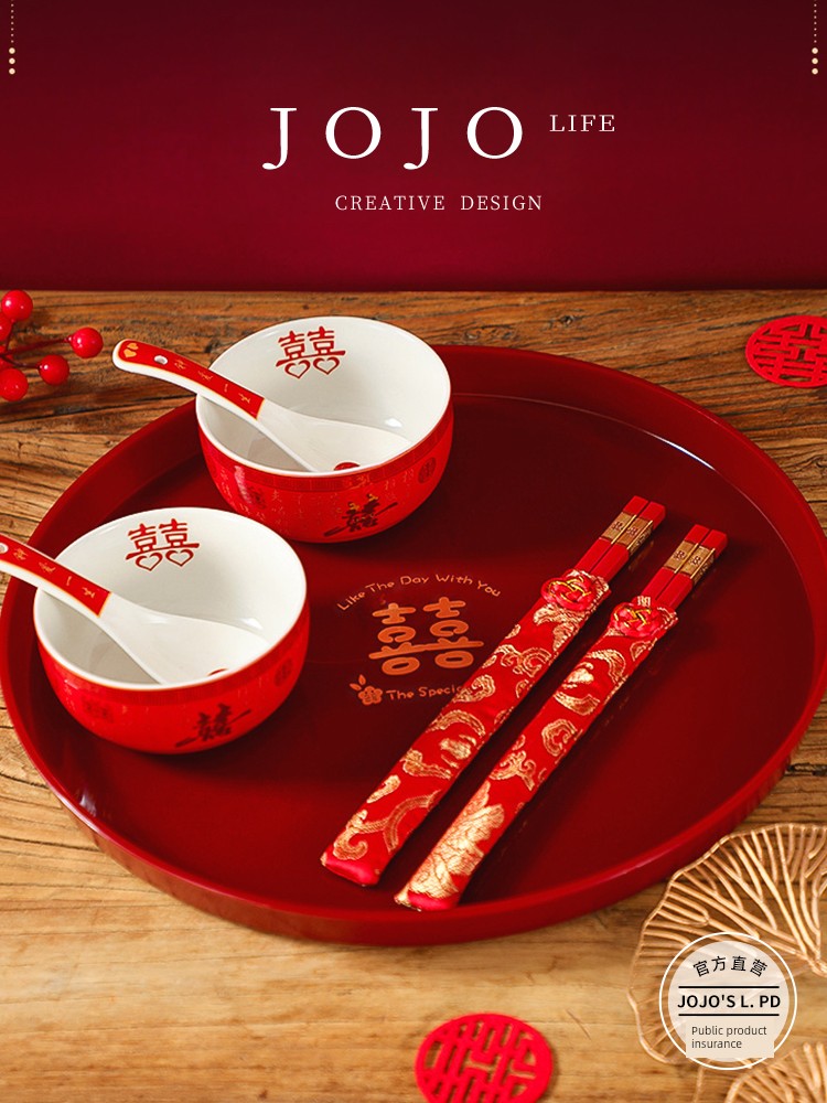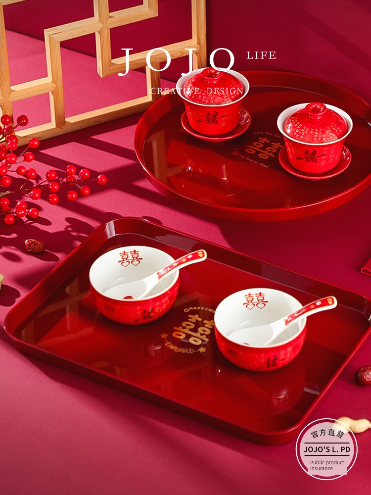 Jojo's L. Pd. Mr. Grocery. Wedding Fruit Plate Candy Tray Red Festive Living Room Tray | Plop