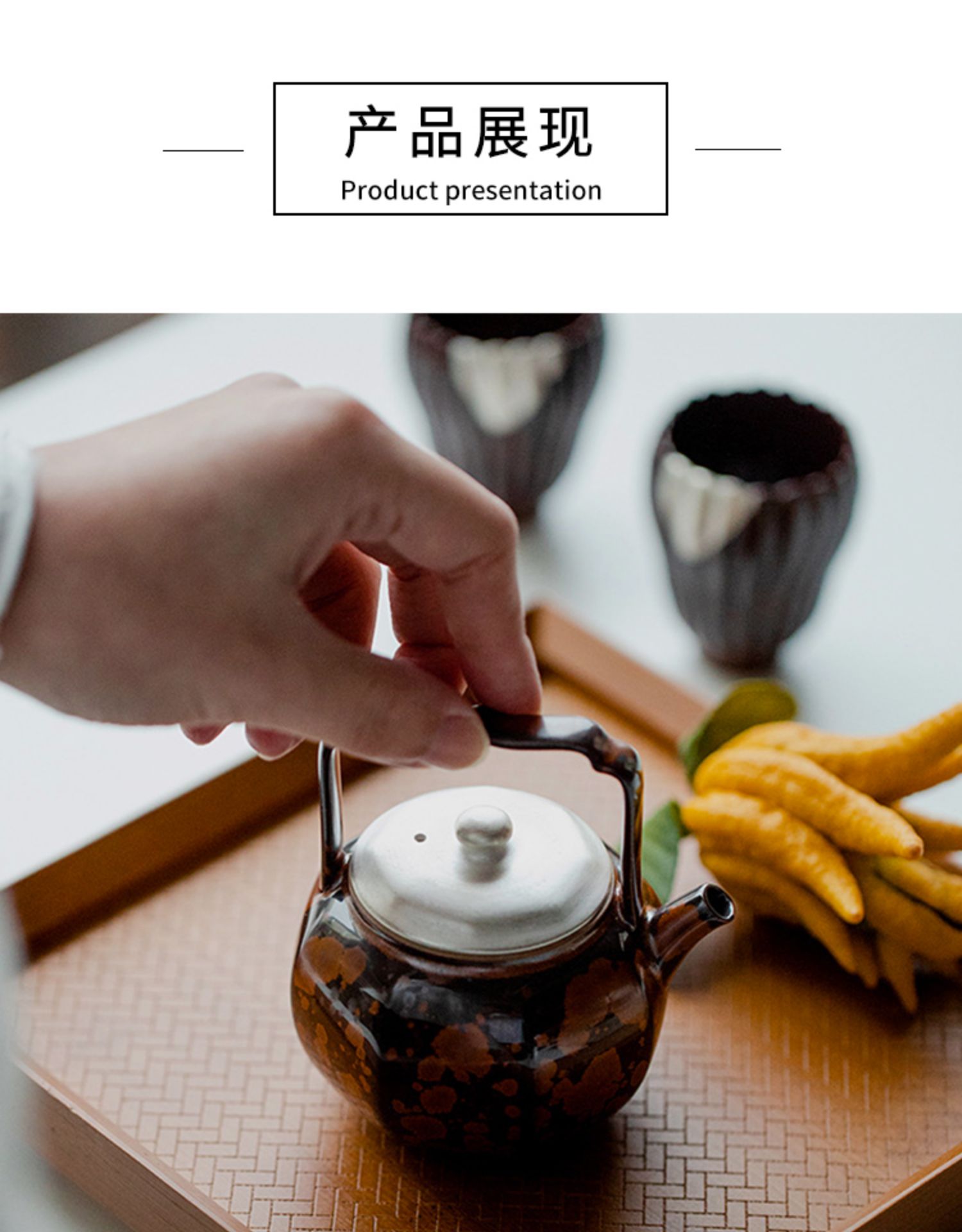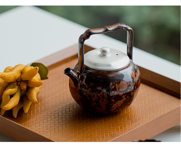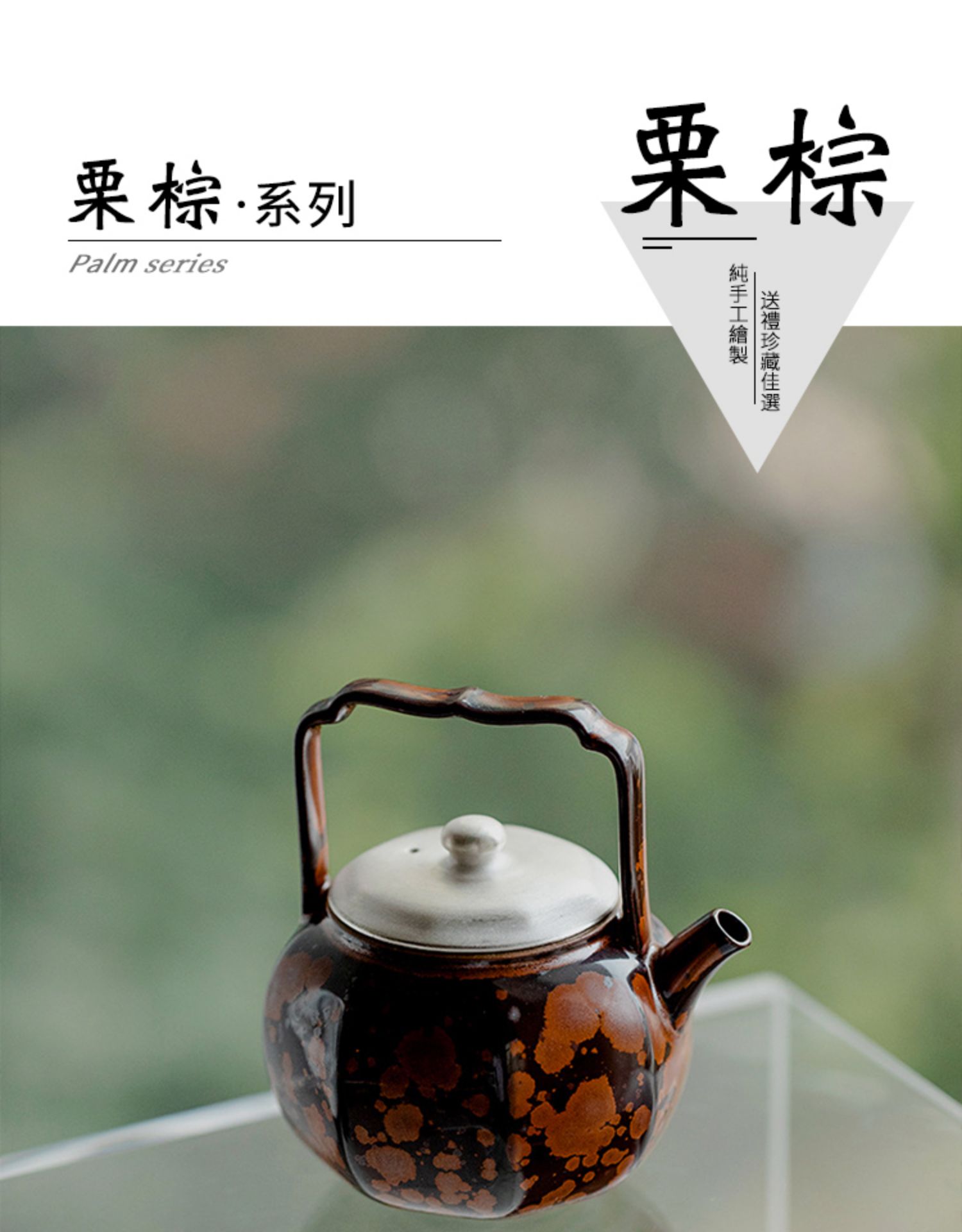 Jojo's L. PD Palm Drawing Silver Perillaseeds Eight Square Meters Loop-Handled Teapot Ceramic Single Pot Teapot with Filter Chestnut Brown