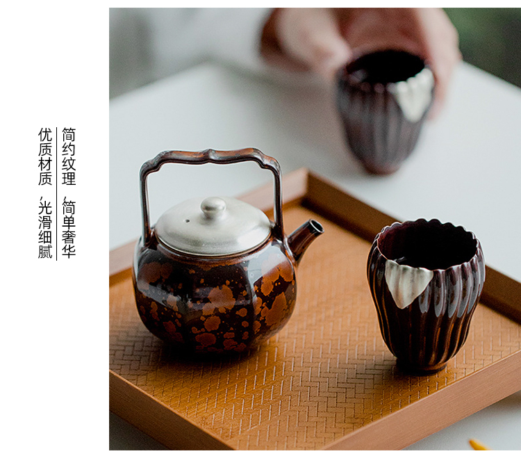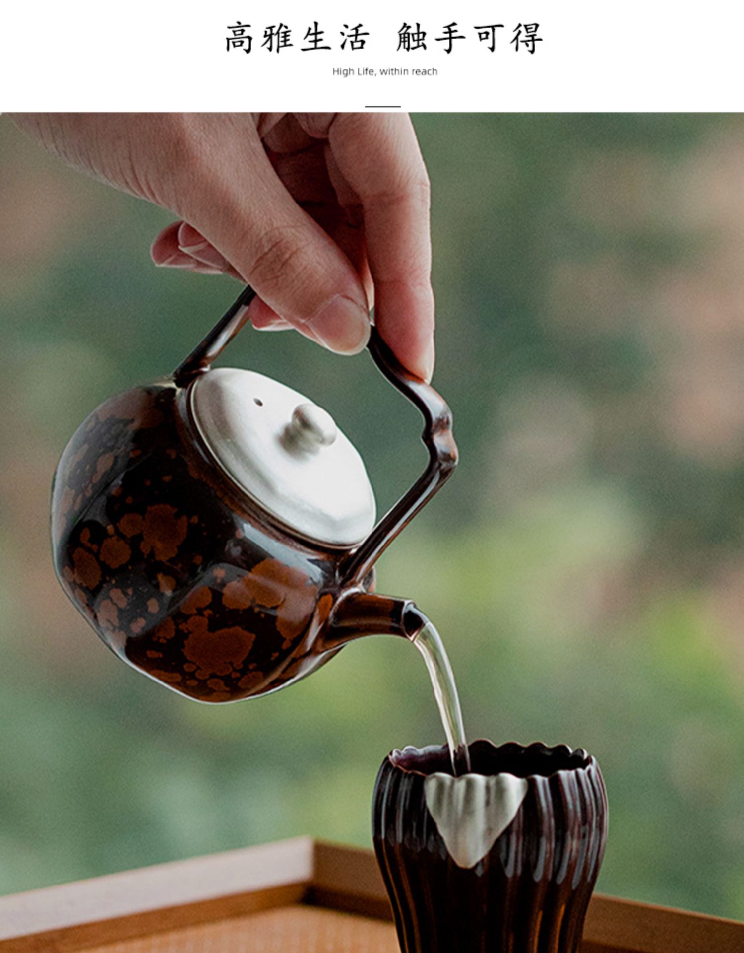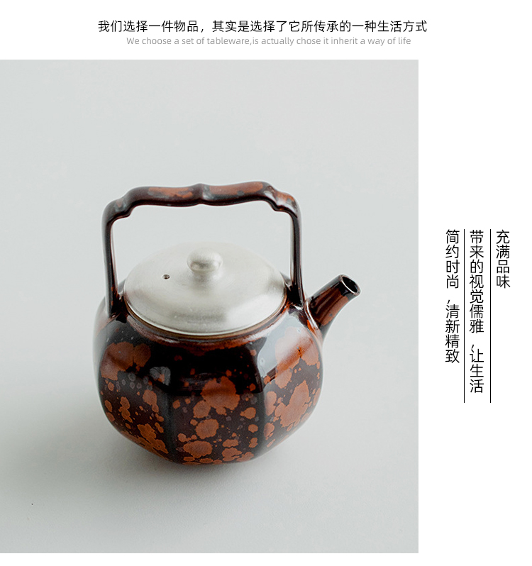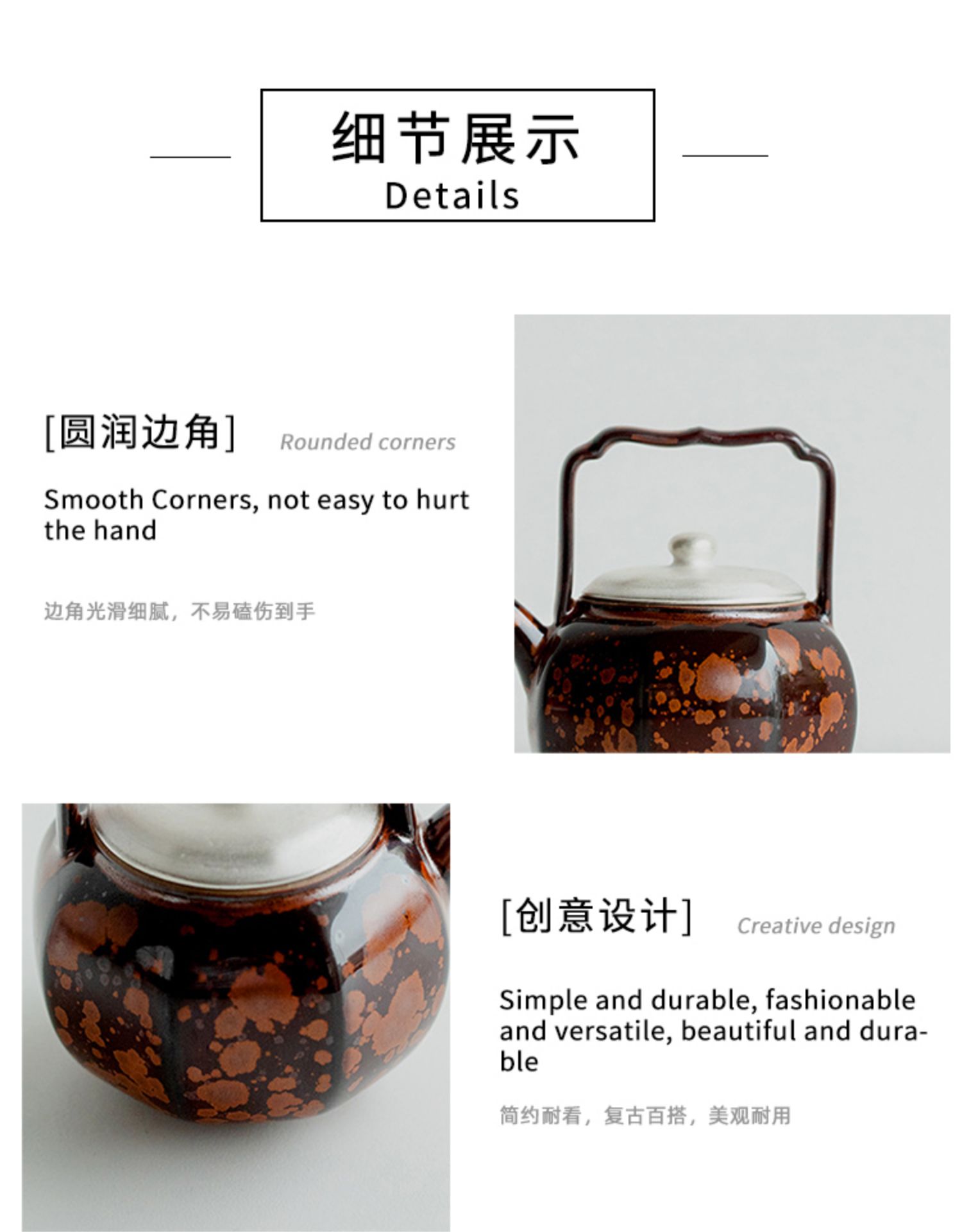 Jojo's L. PD Palm Drawing Silver Perillaseeds Eight Square Meters Loop-Handled Teapot Ceramic Single Pot Teapot with Filter Chestnut Brown