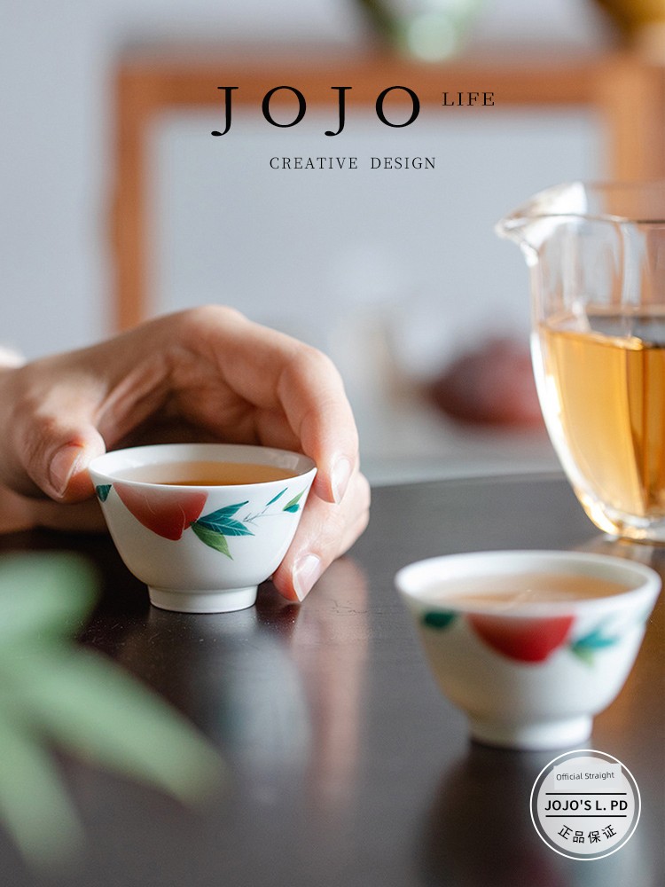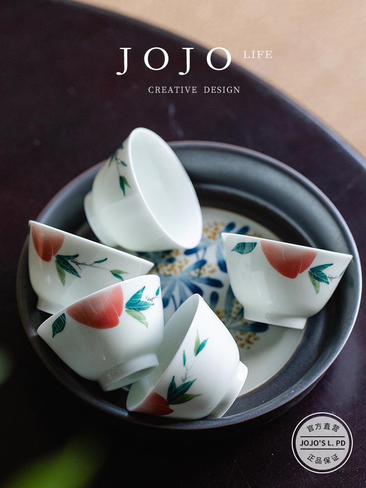 Jojo's L. Pd. Residences. Antique Porcelain Hand-Painted Peach Tea Kung Fu Tea Cup Ceramics | District Residents