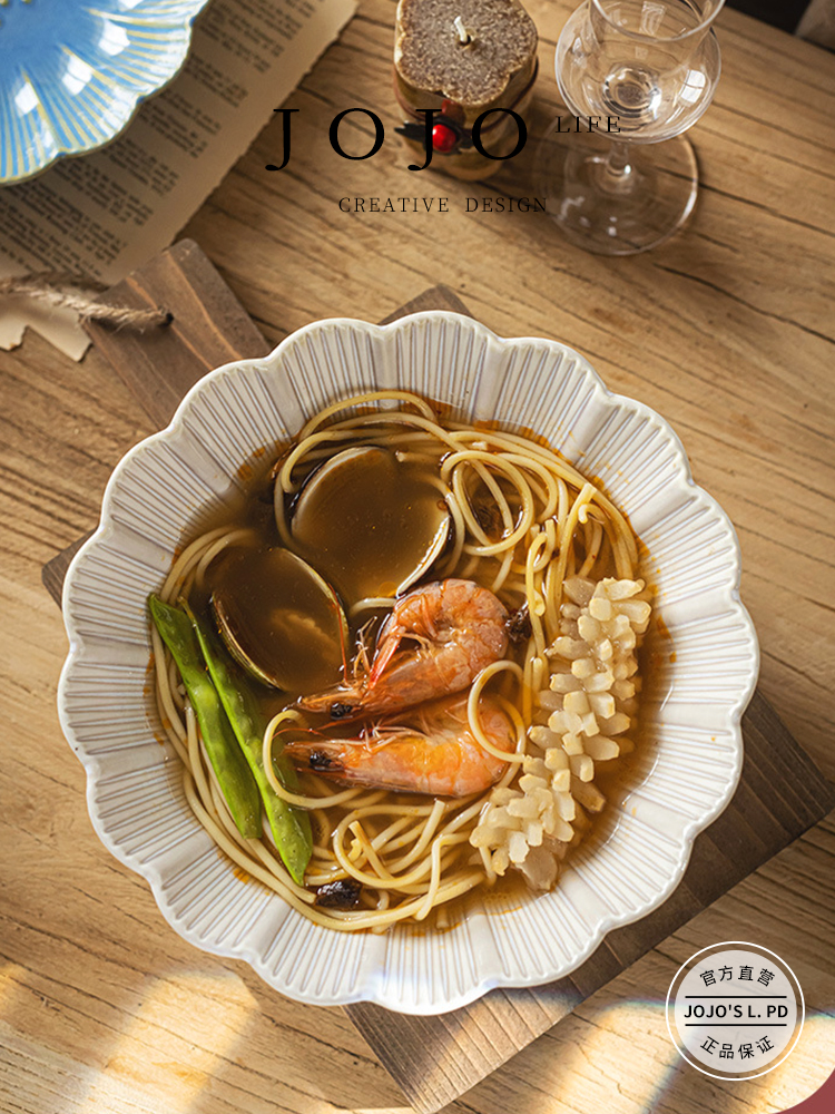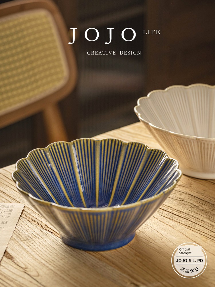 Jojo's L. Pd. River. Rain-Hat Shaped Bowl Retro and Beautiful Japanese Ceramic Noodle Bowl Meal Bowl | Mu He
