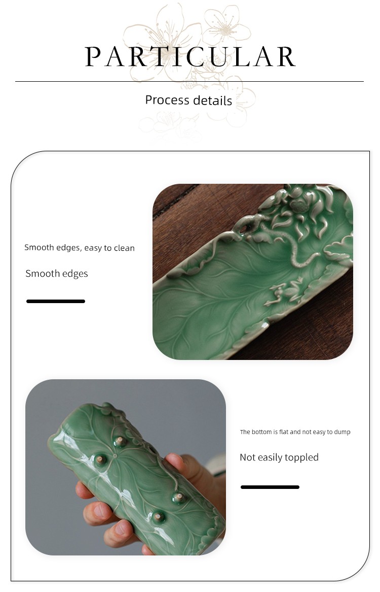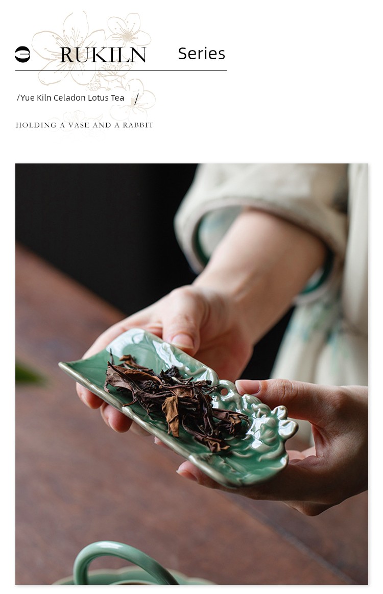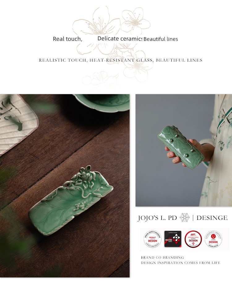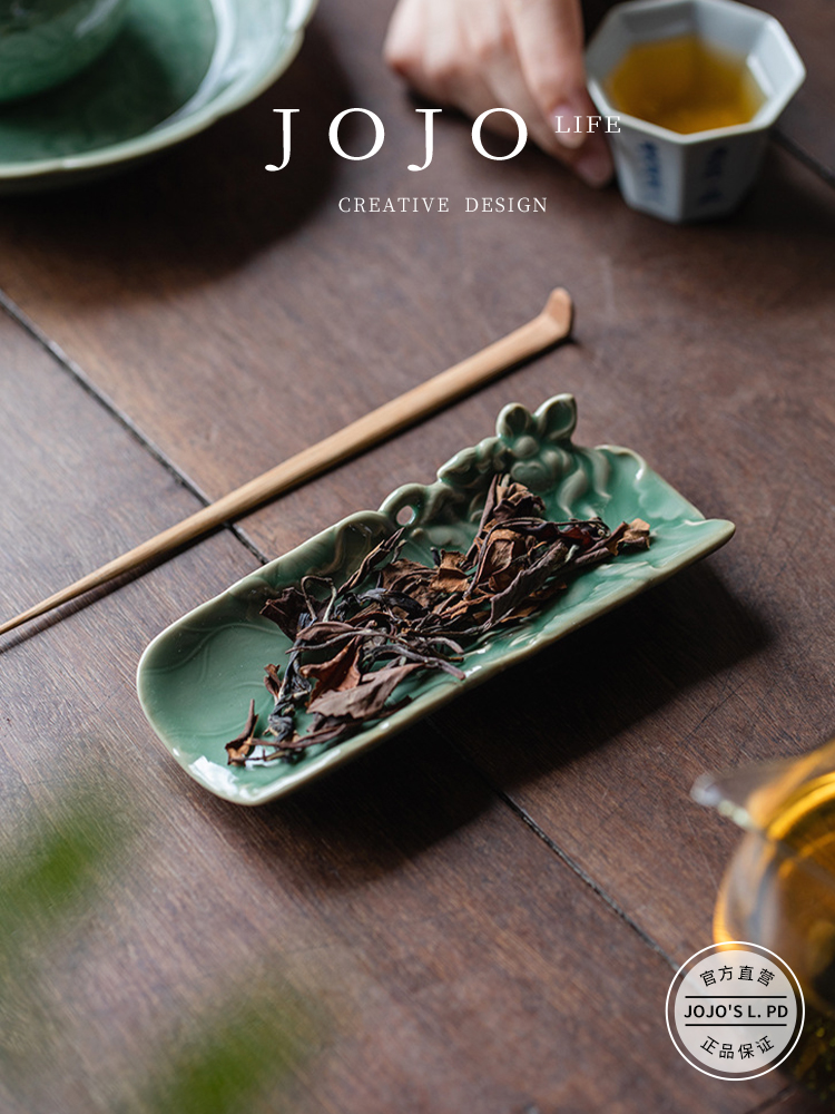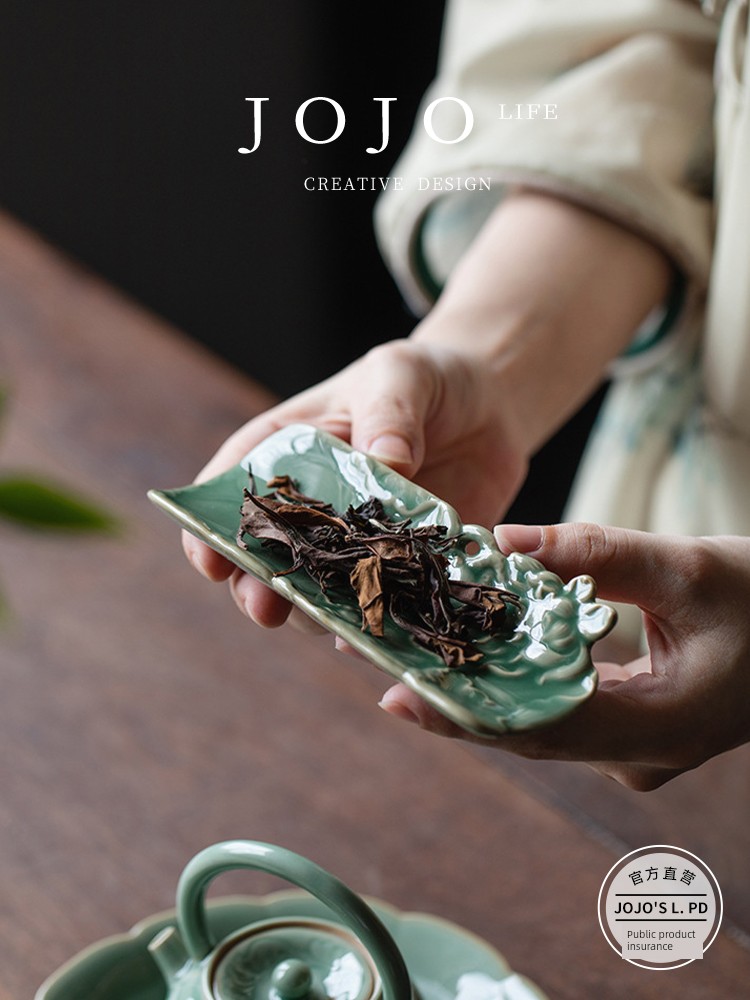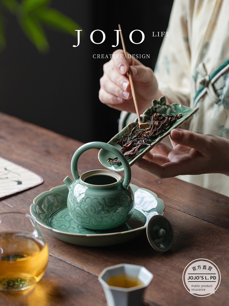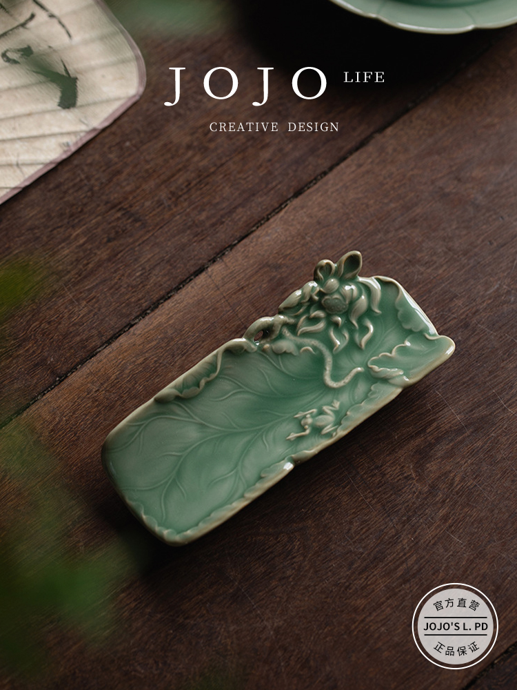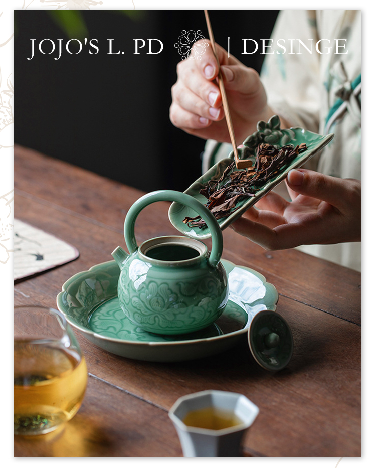 Jojo's L. Pd. Rukiln. Half-Handmade Yue Kiln Zi-Qing Mei Embossed Lotus Frog Fun Tea Spoon | Body Bow