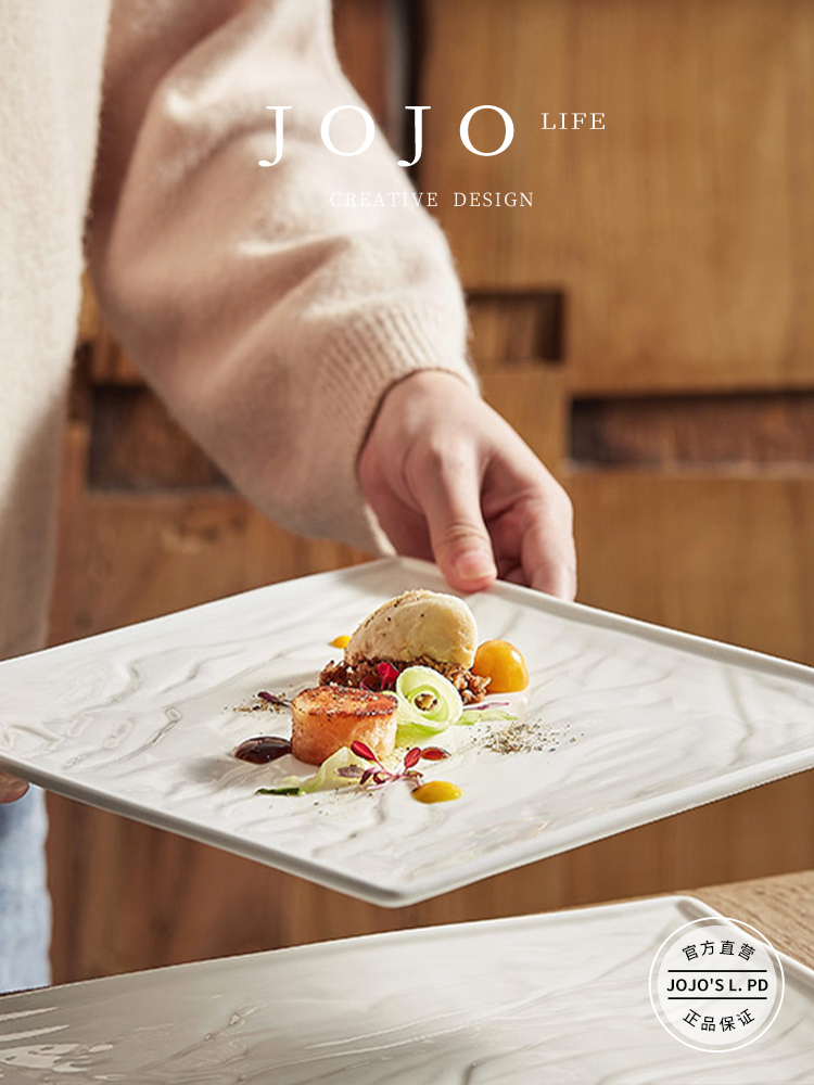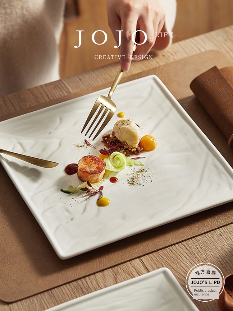 Jojo's L. Pd. Together. Square Western Food Plate White Steak Plate Creative | Accompany