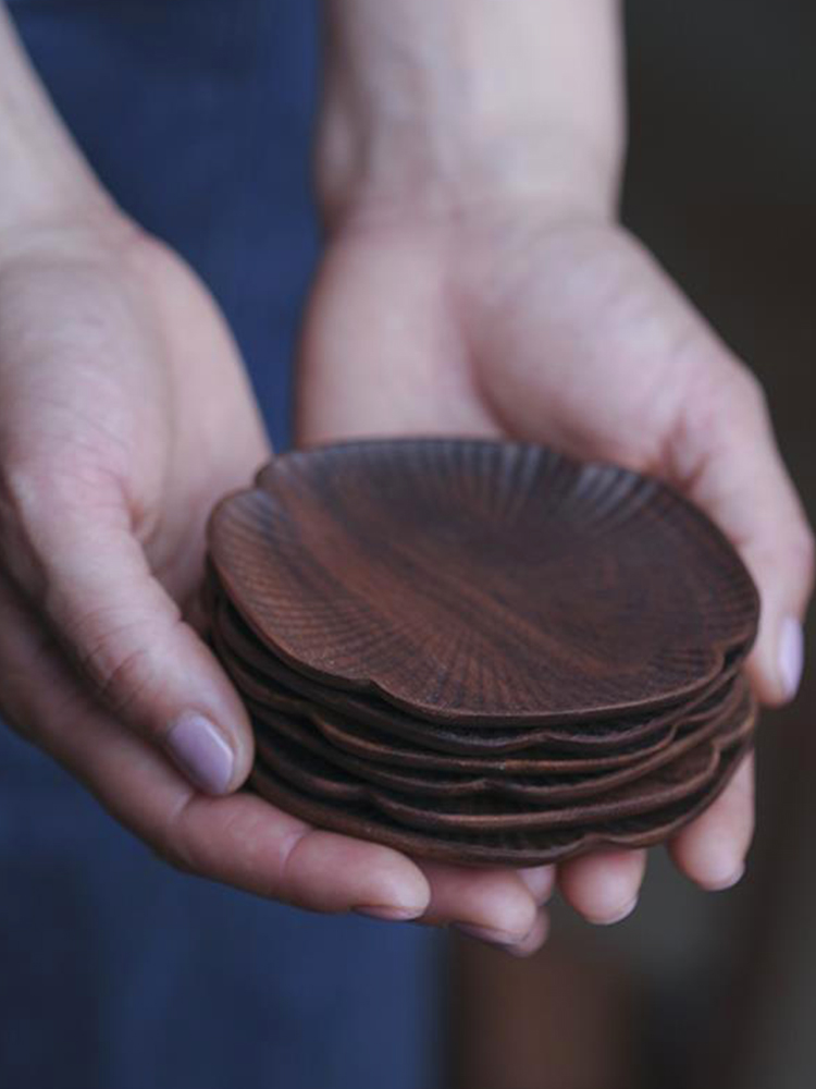 Jojo's L. Pd. Ziquan Jian. Black Walnut Wooden Tea Cup Holder Clover Coaster Solid Wood Oven Mitts | Military