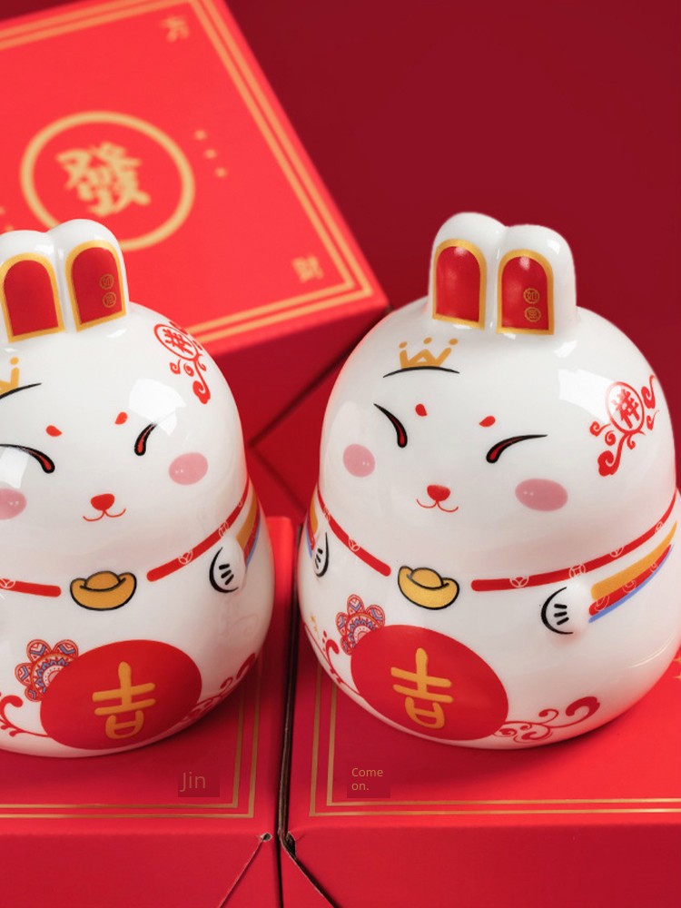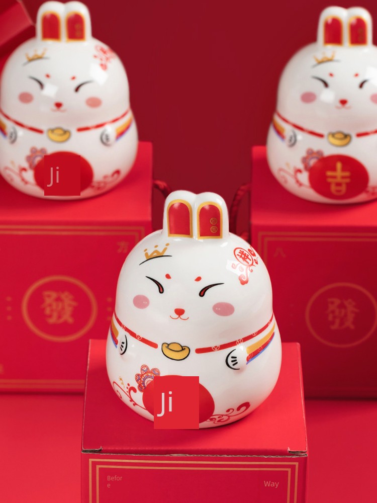 Jojo's L. Pd. Ziquan Jian. Ceramic Rabbit Saving Pot Decoration Hand Gift Money Box | Qi Qi