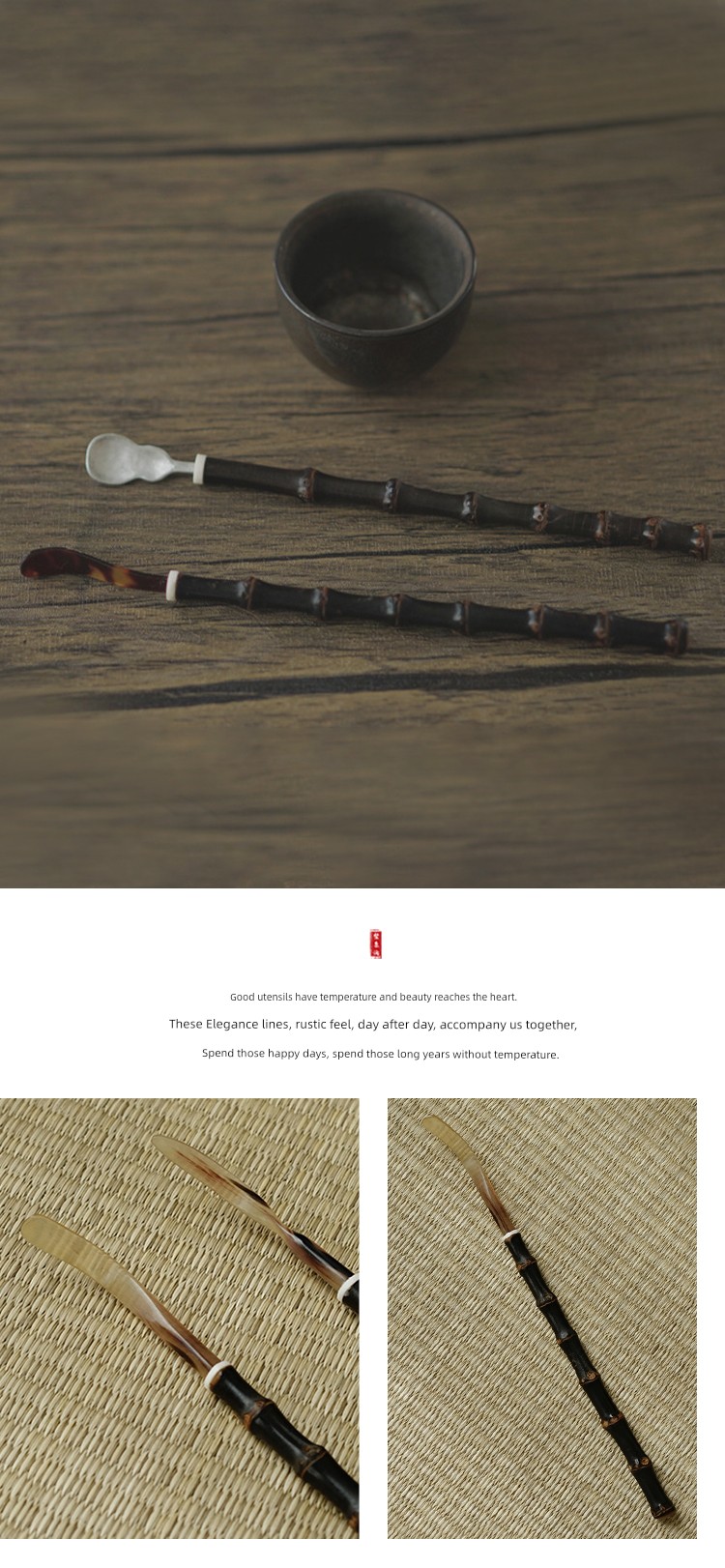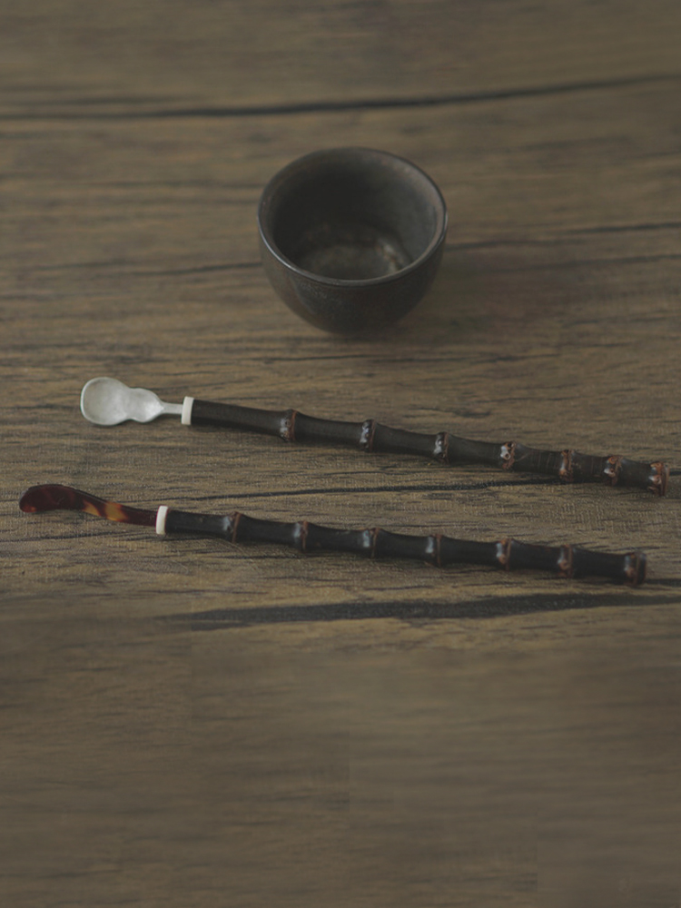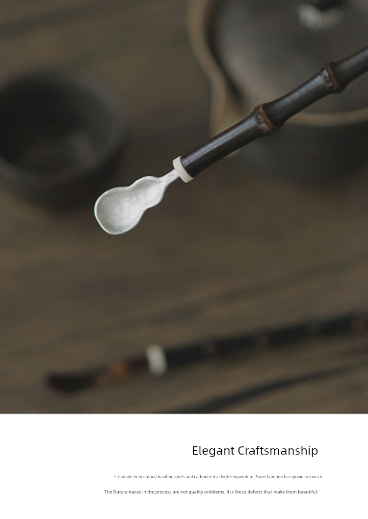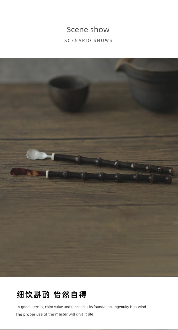 Jojo's L. Pd. Ziquan Jian. Handmade Natural Black Bamboo Handle Tea Pick Tea Spoon Retro Tin Caddy Spoon | Burst