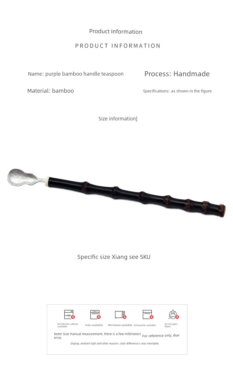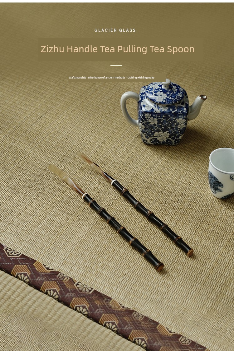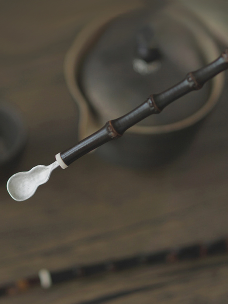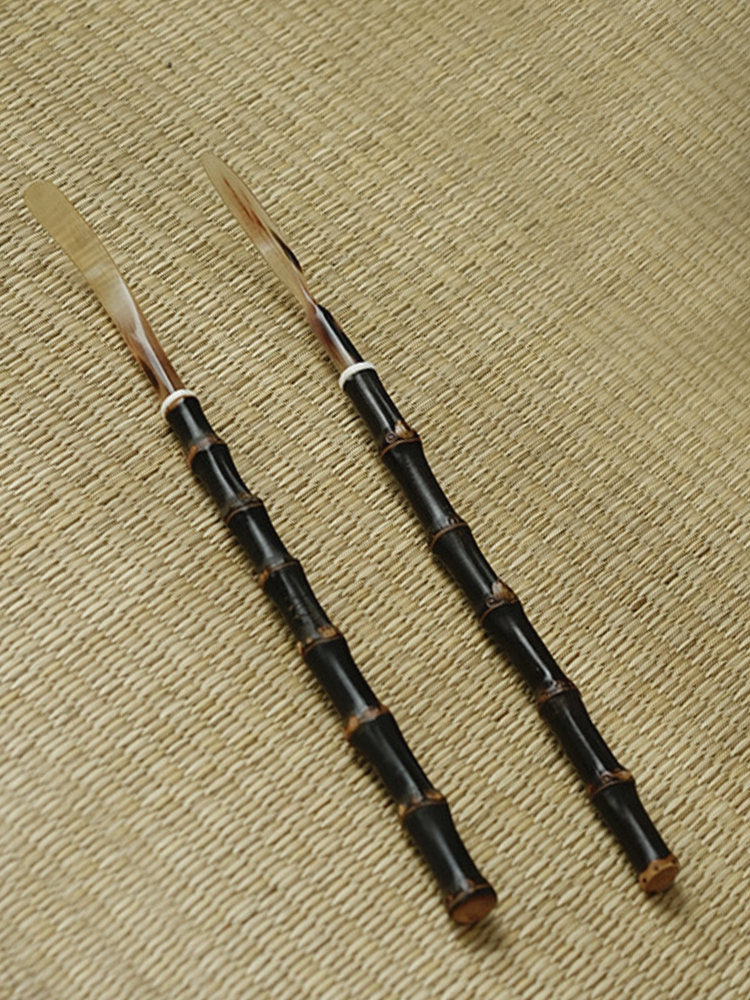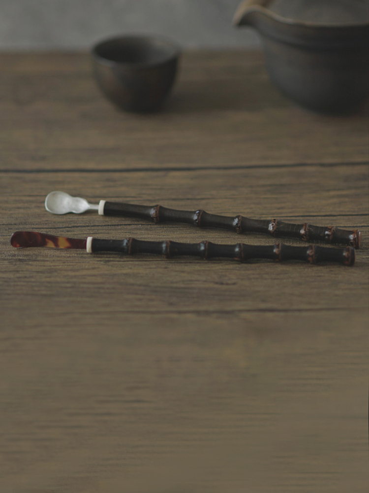 Jojo's L. Pd. Ziquan Jian. Handmade Natural Black Bamboo Handle Tea Pick Tea Spoon Retro Tin Caddy Spoon | Burst