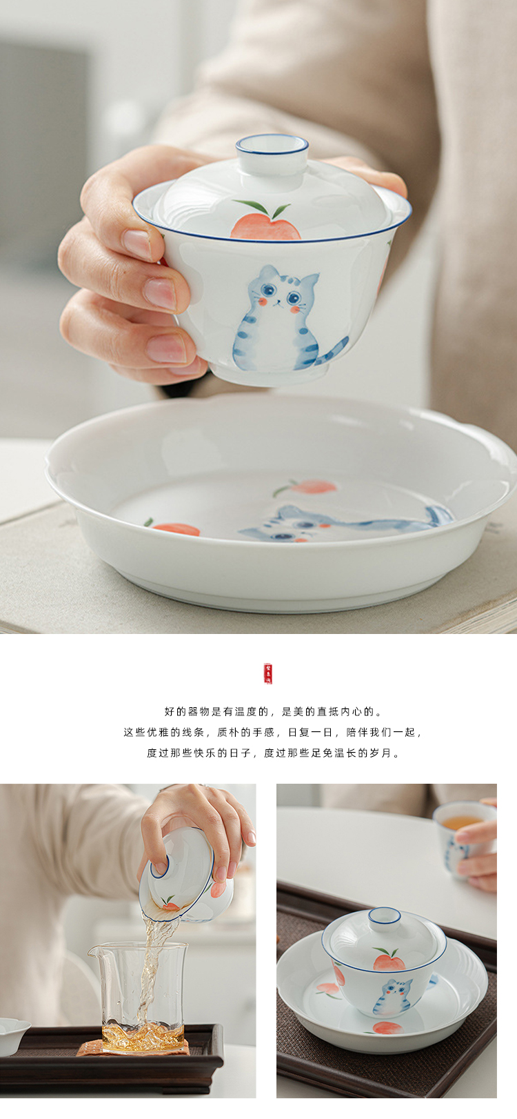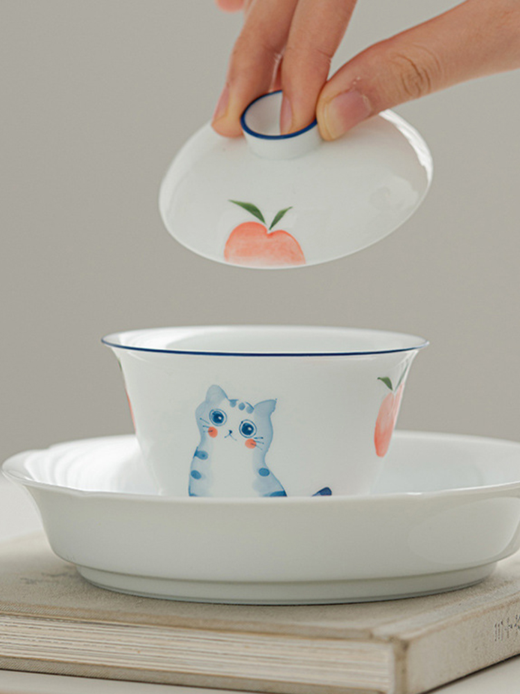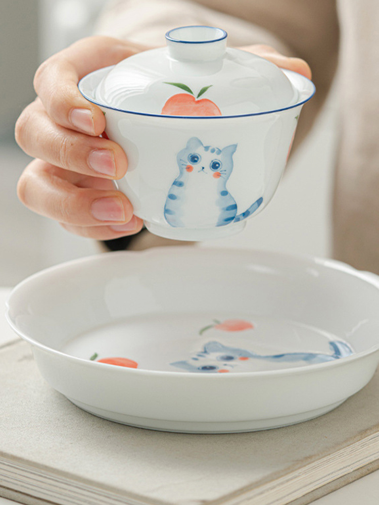 Jojo's L. Pd. Ziquan Stream. Three-Dimensional Hand Painted Underglaze Gaiwan High-Grade Tea Making For Home | Crop Collection