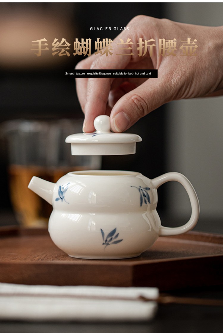 Jojo's L. Pd. Ziquan Stream. White Porcelain Hand Drawn Butterfly Orchid Ceramic Teapot Chinese | Far-Sighted