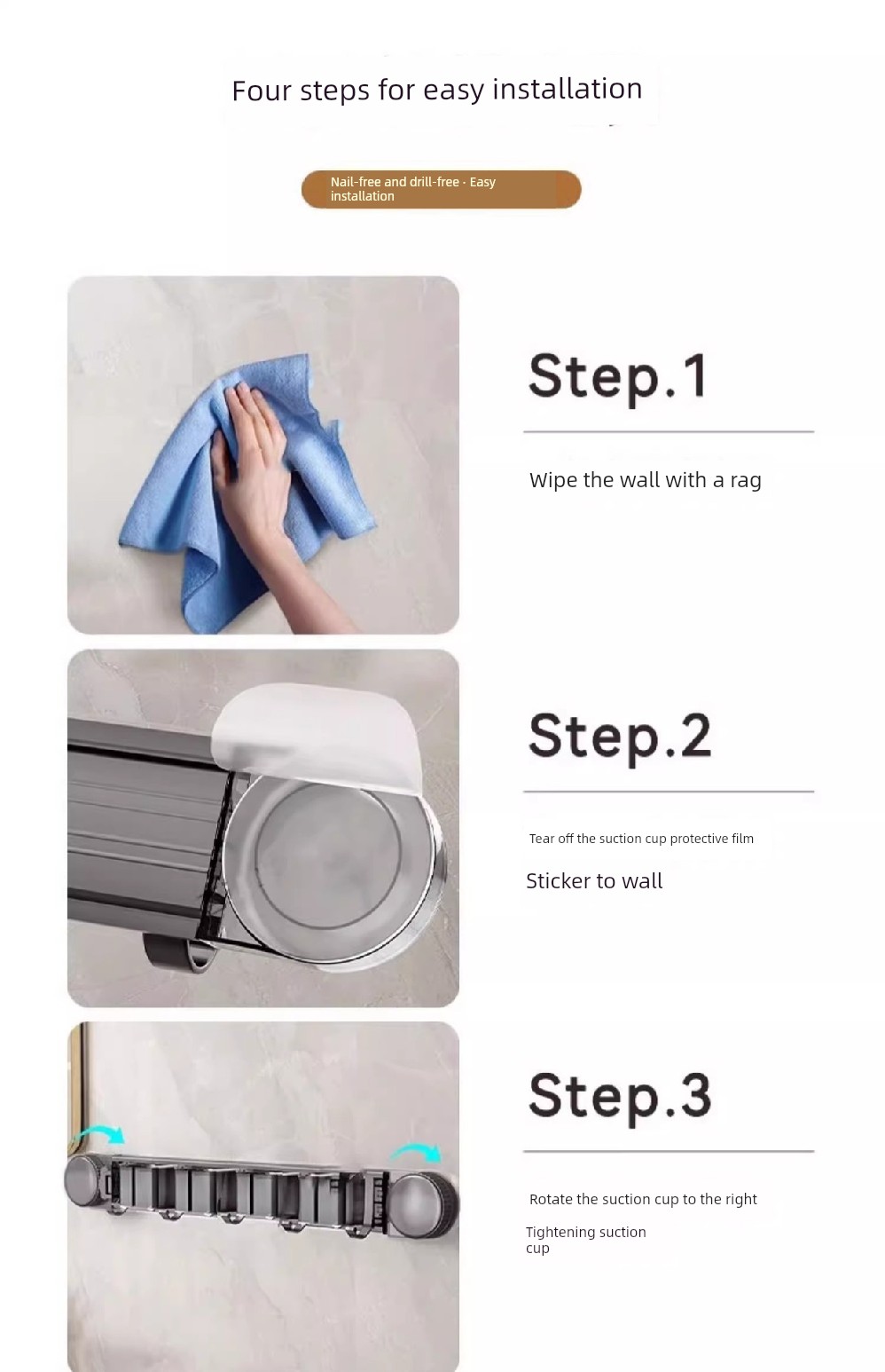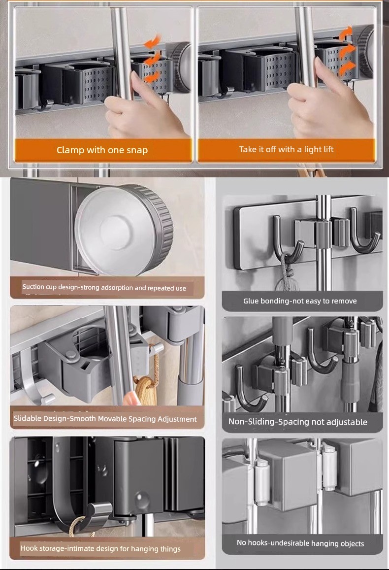 Jujiajia Bathroom Suction Cup Mop Wall Hanging Clip Bathroom Punch-Free Fixed Hook Buckle Broom Storage Storage Hook
