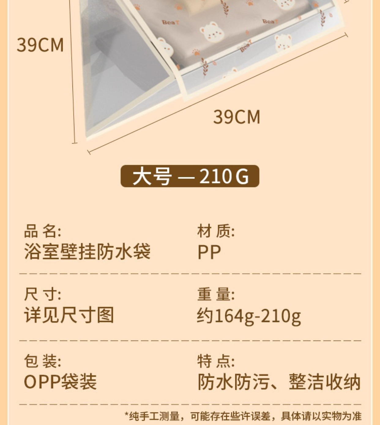 Jujiajia Bathroom Transparent Waterproof Buggy Bag Household Hanging Bath Hanging Storage Bag Bathroom Suit Bag