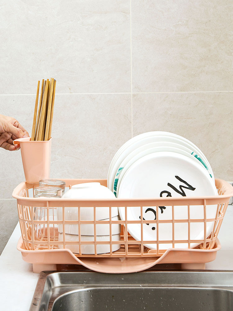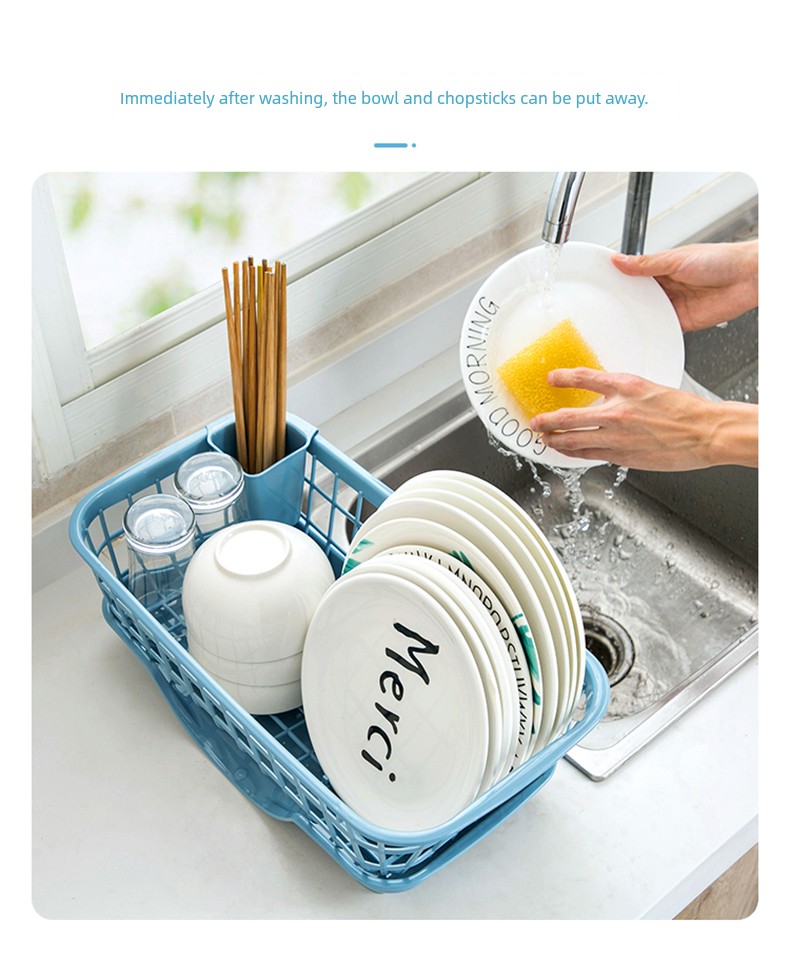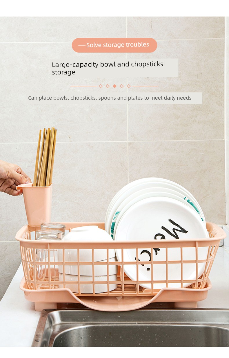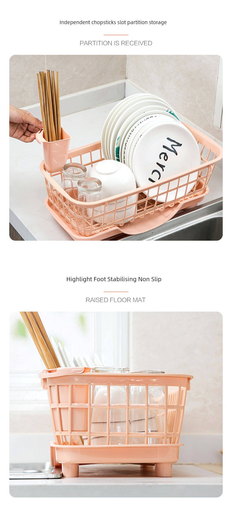 Jujiajia Dish Storage Rack For Home with Chopsticks Cage Removable Dish Rack Draining Rack Kitchen Plastic Tableware Rack