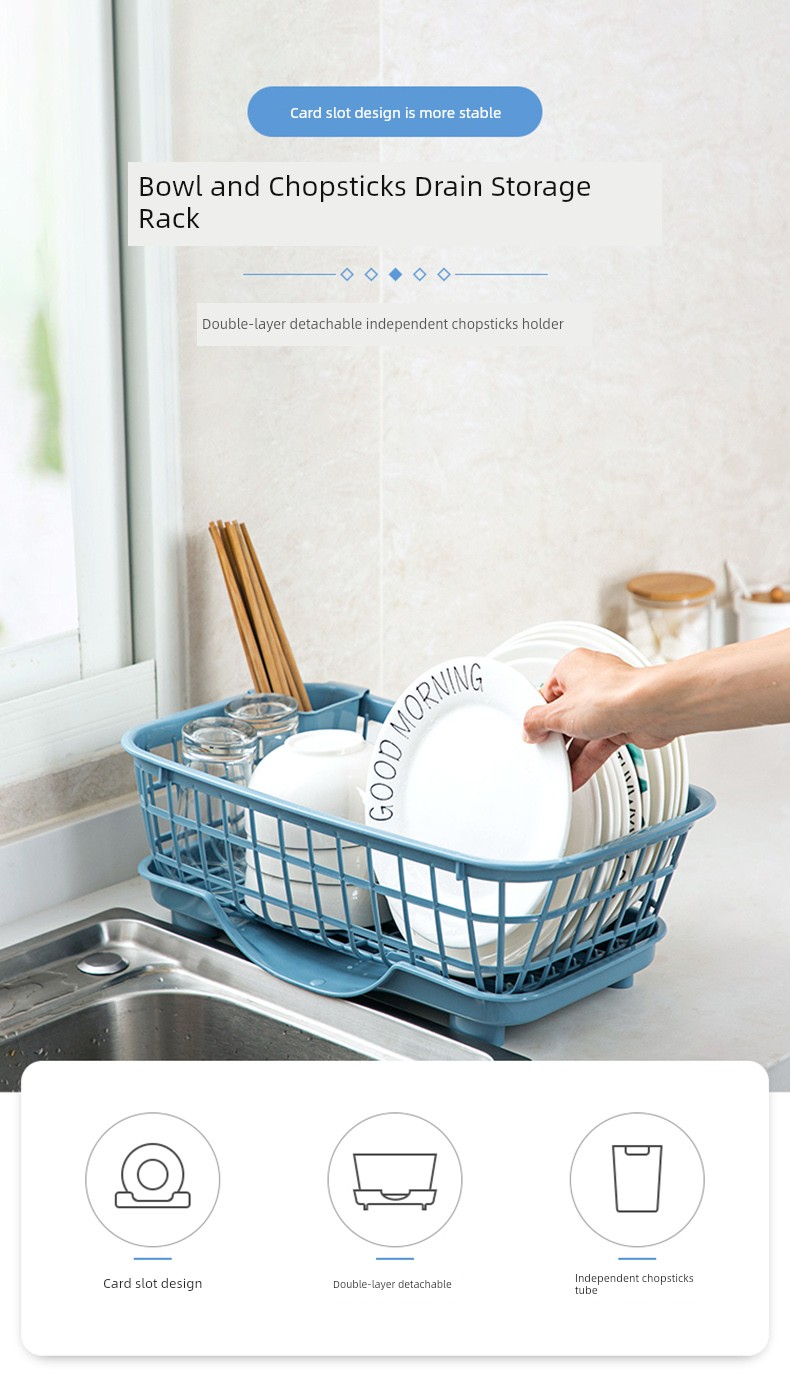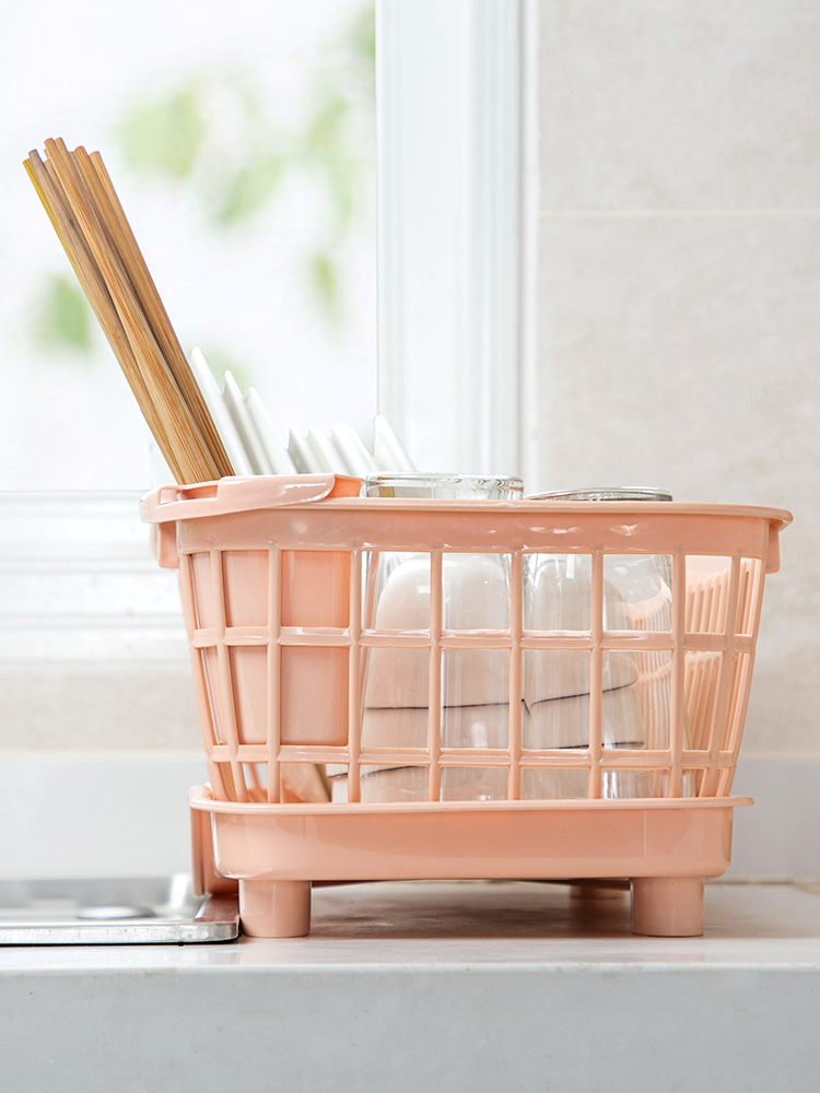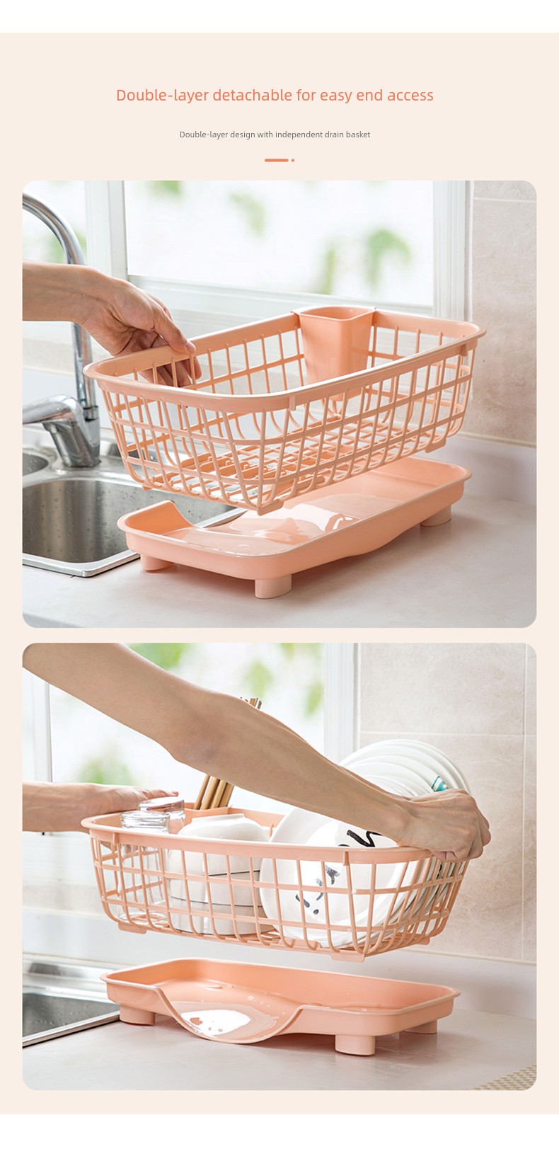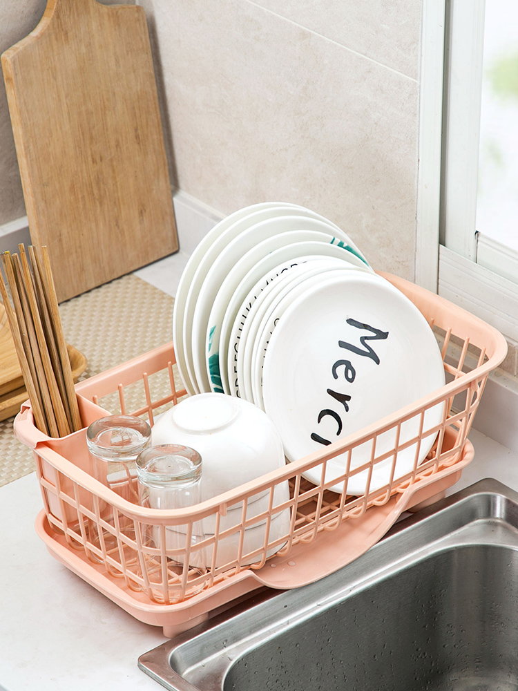 Jujiajia Dish Storage Rack For Home with Chopsticks Cage Removable Dish Rack Draining Rack Kitchen Plastic Tableware Rack