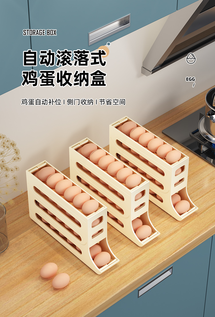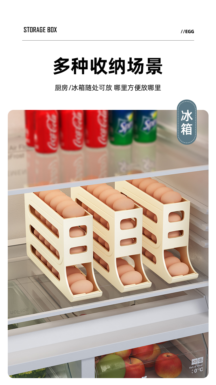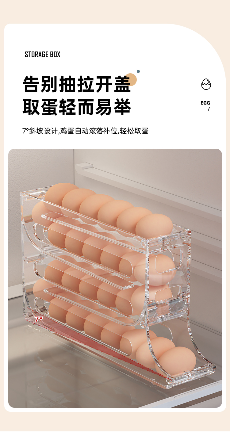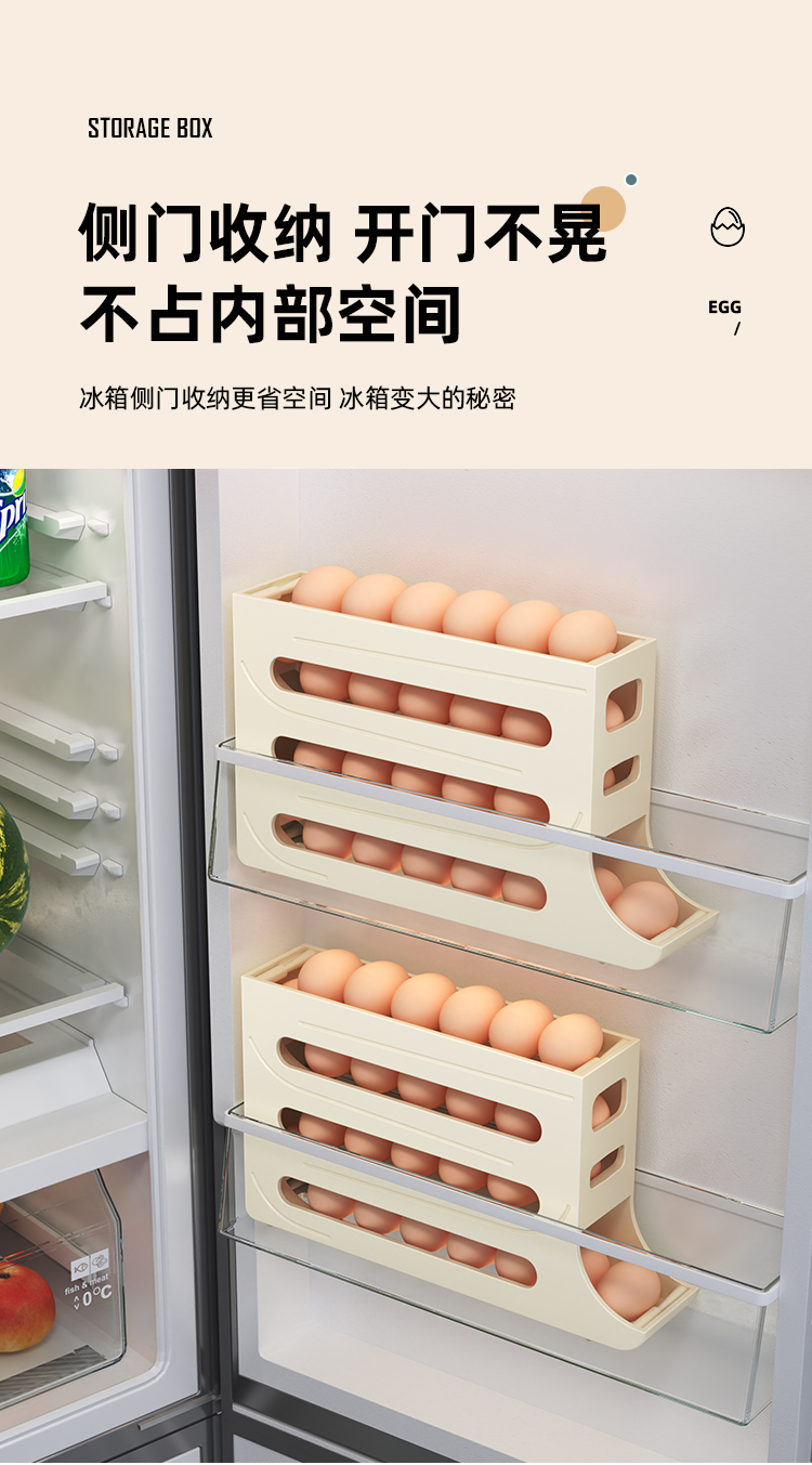 Jujiajia Egg Storage Box Automatic Sliding Egg Roller Refrigerator Side Door Special Preservation Egg Holder Organize Fantastic