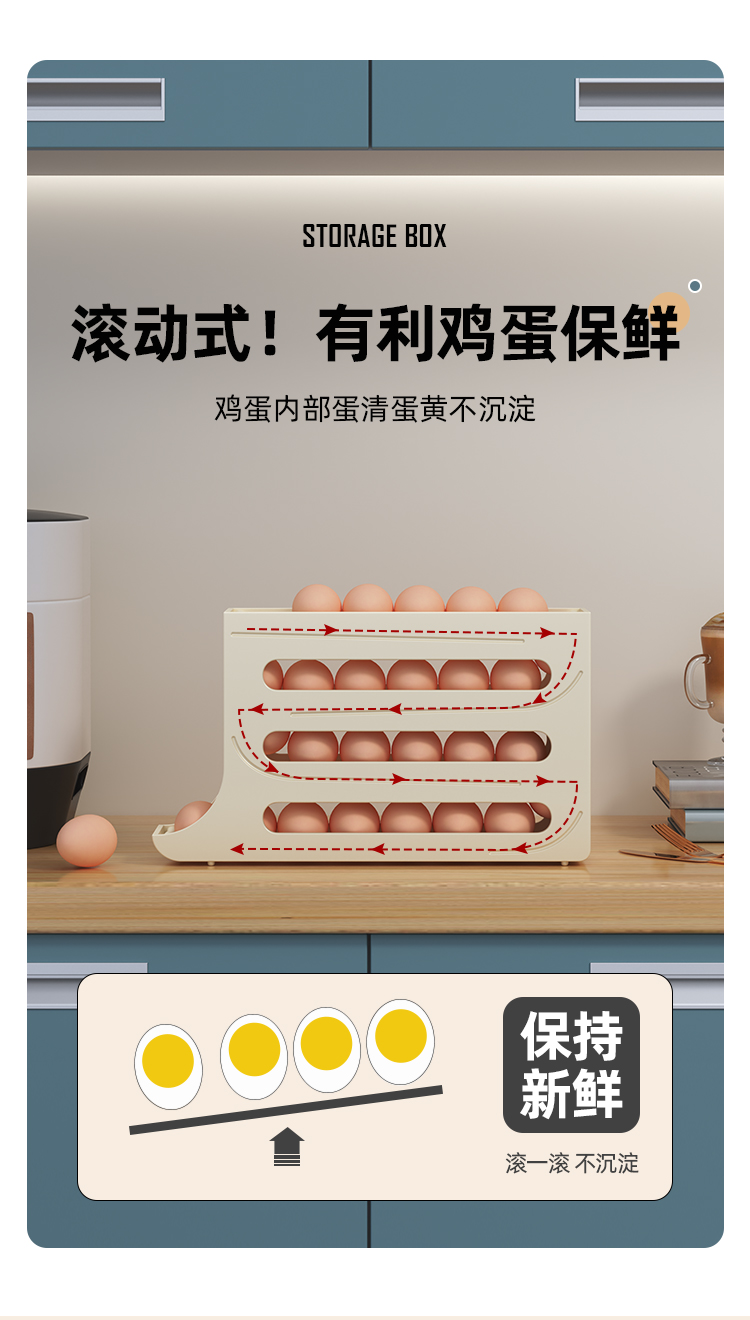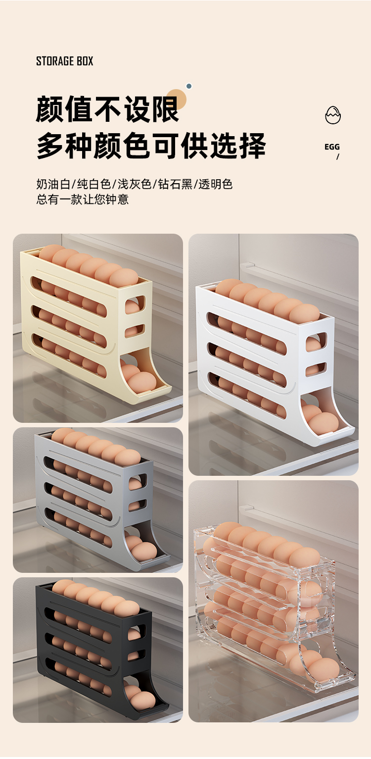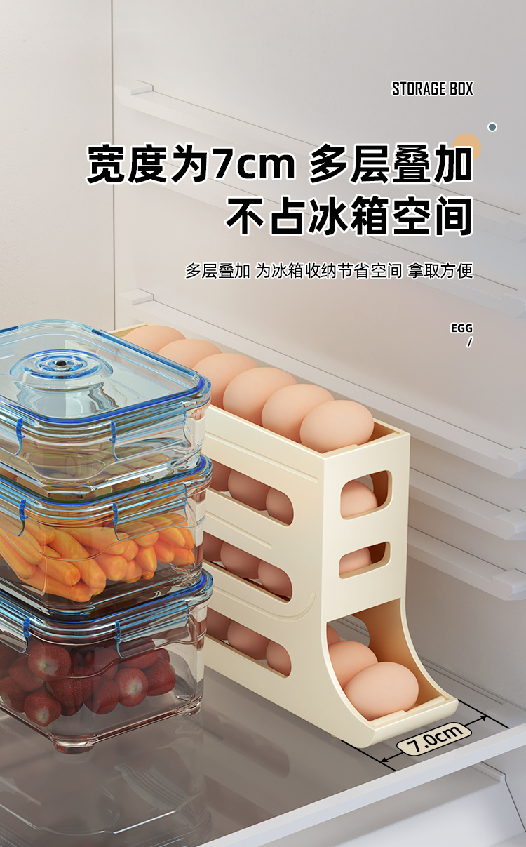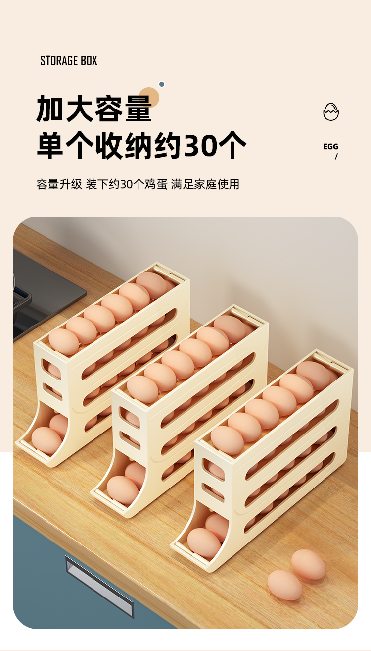 Jujiajia Egg Storage Box Automatic Sliding Egg Roller Refrigerator Side Door Special Preservation Egg Holder Organize Fantastic