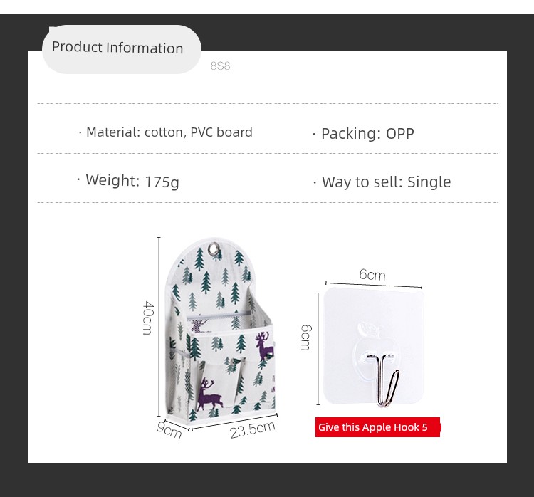 Jujiajia Fabric Storage Bag Tools for Student Dormitories Wall-Mounted Storage Bag behind the Door, on the Wall Storage Rack Cloth Bag