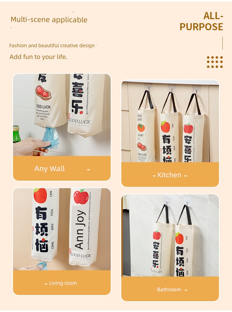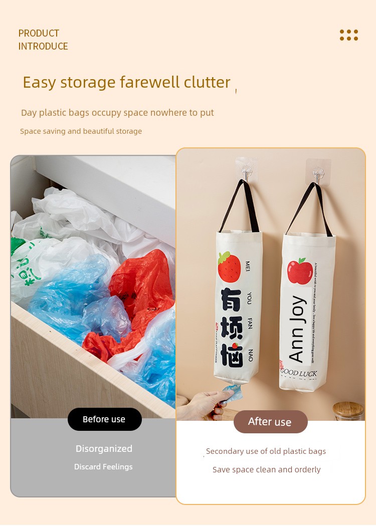 Jujiajia Garbage Bag Storage Fantastic Kitchen Wall-Mounted Plastic Bag Storage Bag For Home Punch-Free Organization Hanging Bags