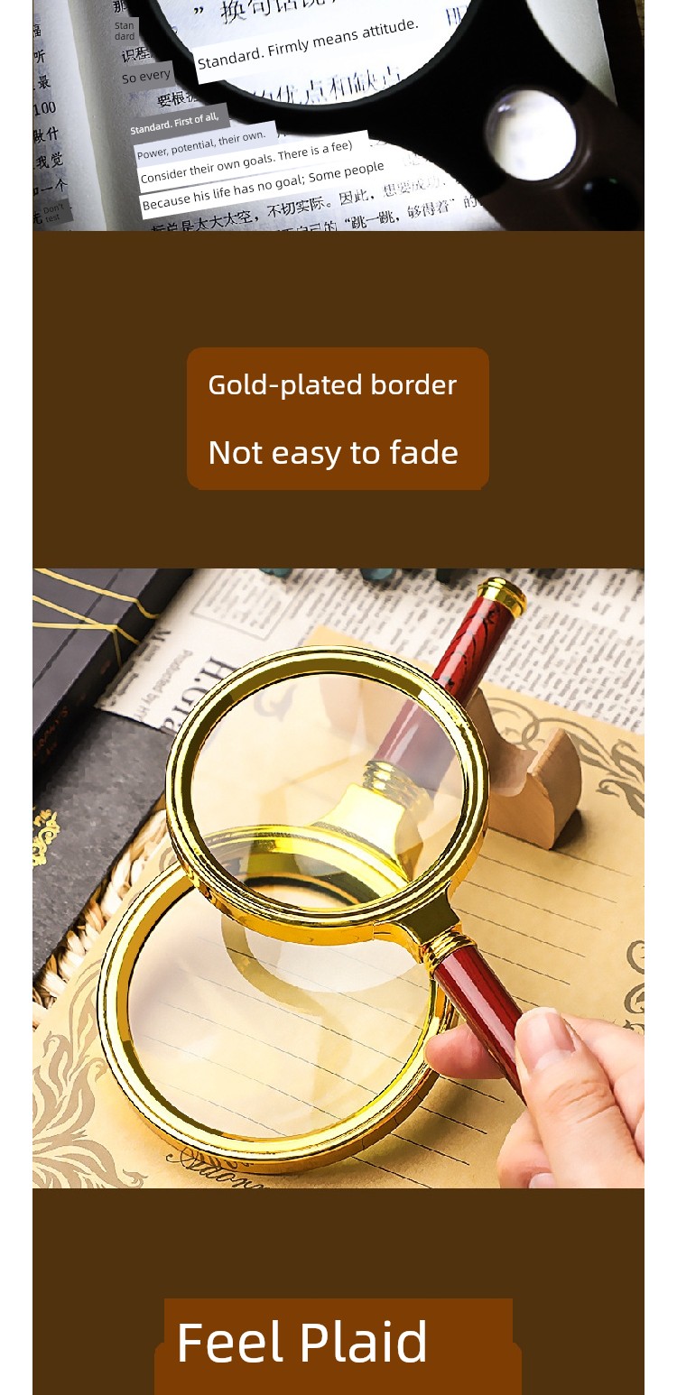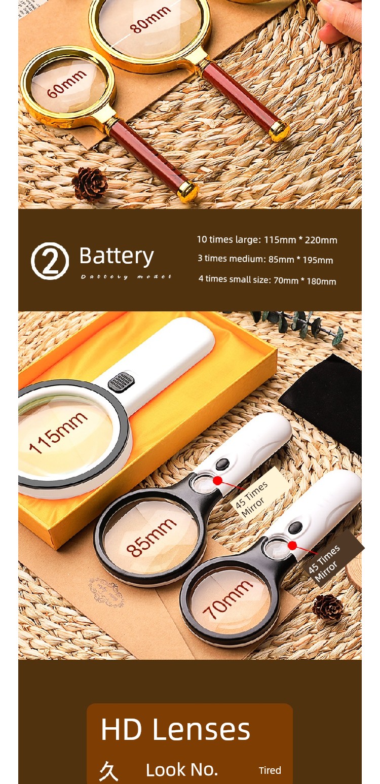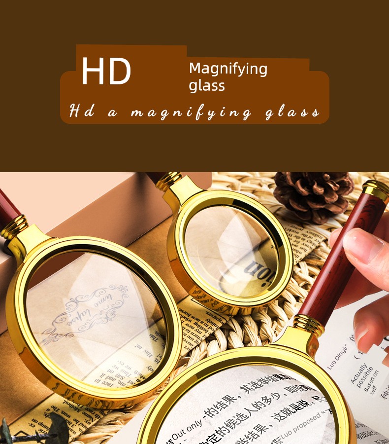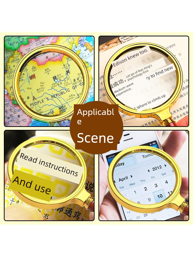 Jujiajia HD Reading Magnifying Glass Handheld Glasses for the Elderly Presbyopia Metal Frame Children's Science Small Standard Eye-Detecting Lens Box