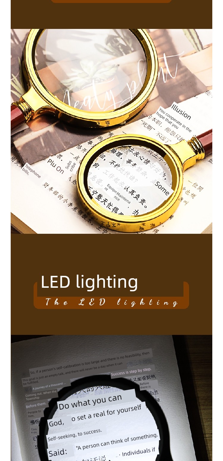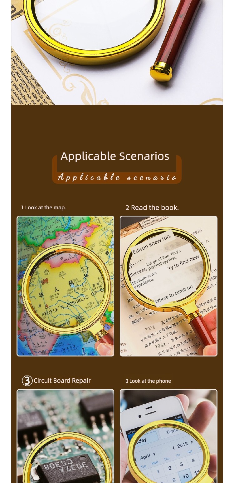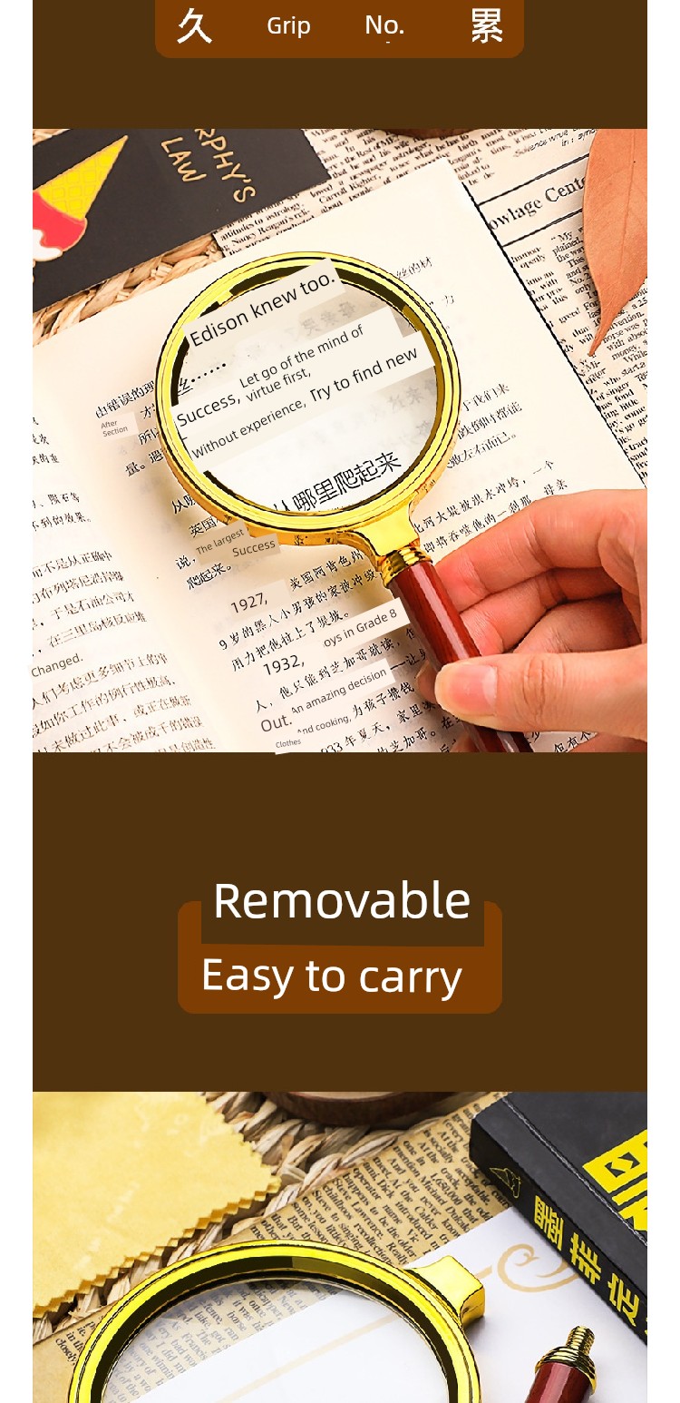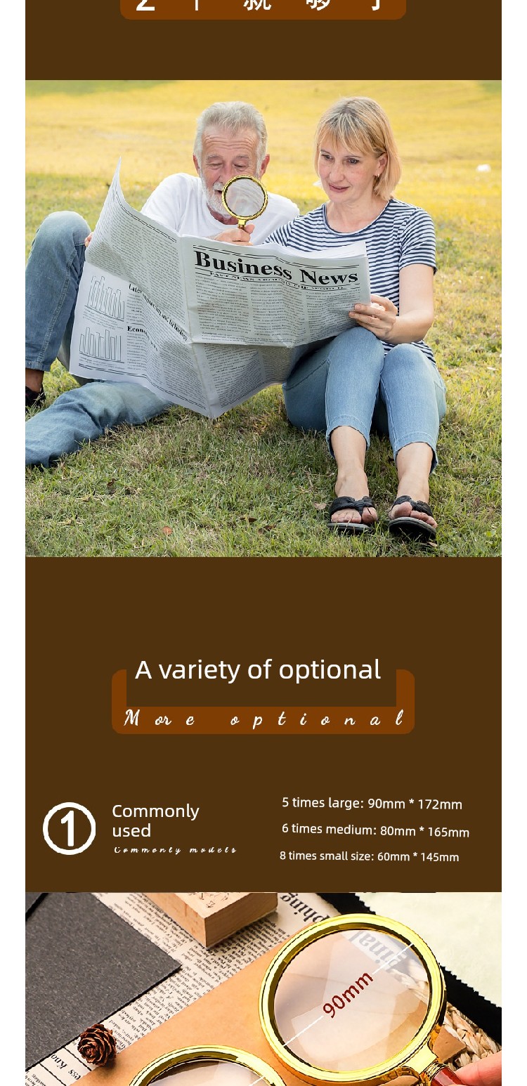 Jujiajia HD Reading Magnifying Glass Handheld Glasses for the Elderly Presbyopia Metal Frame Children's Science Small Standard Eye-Detecting Lens Box
