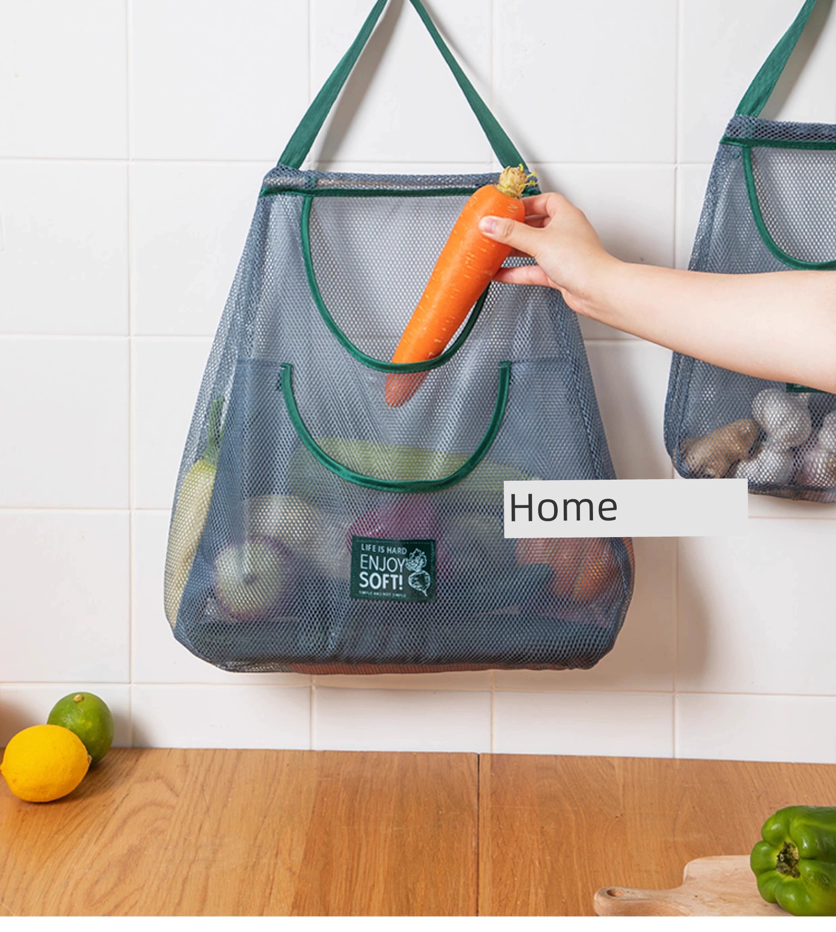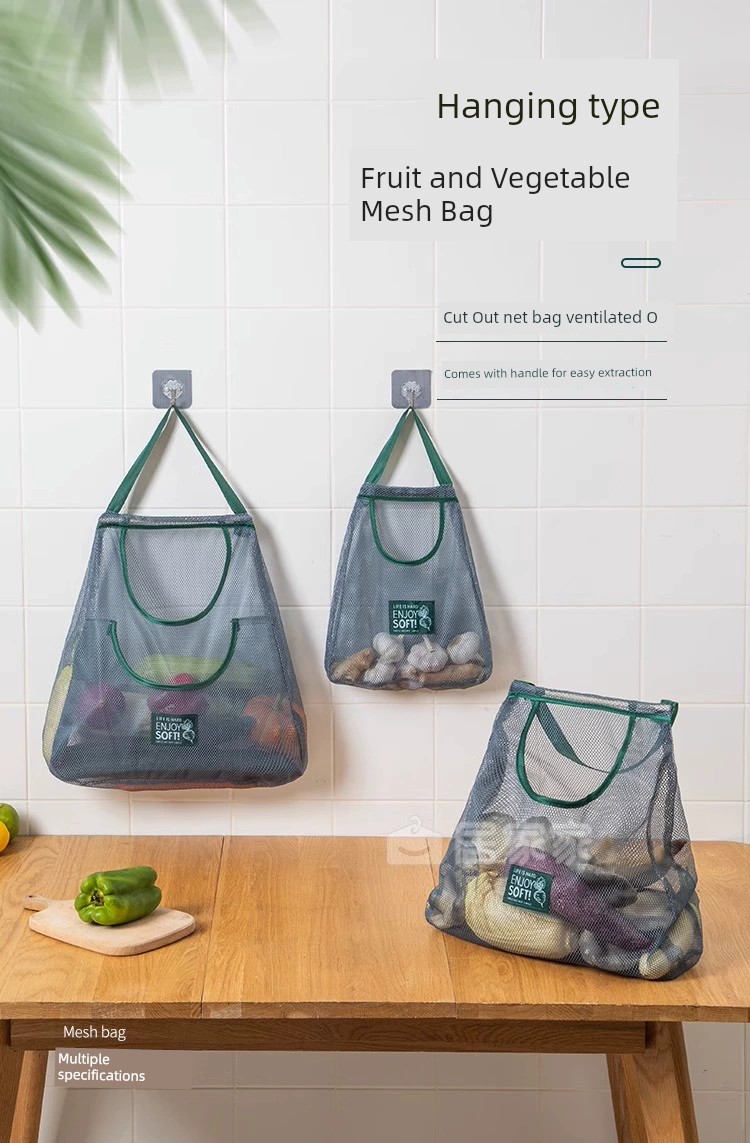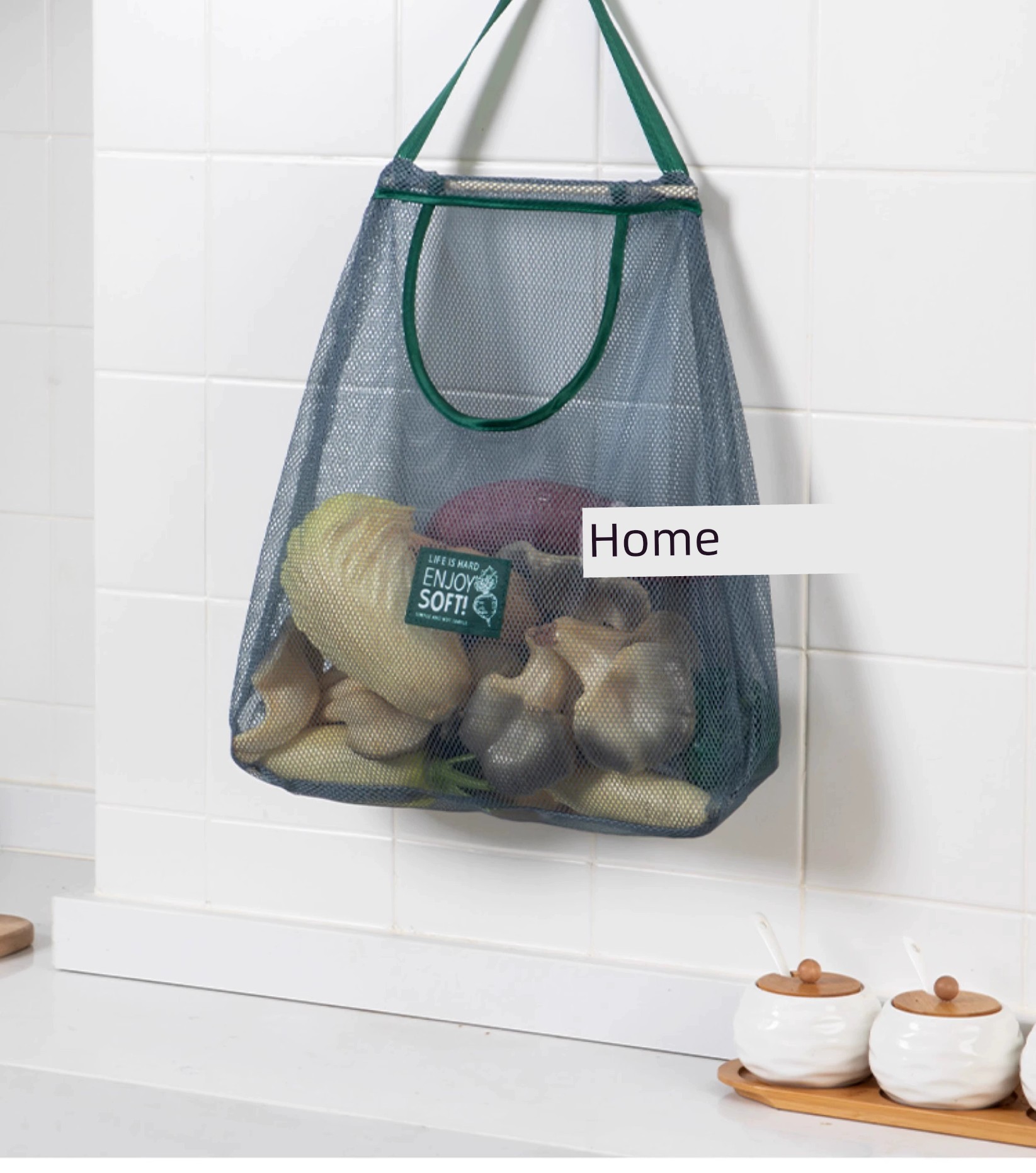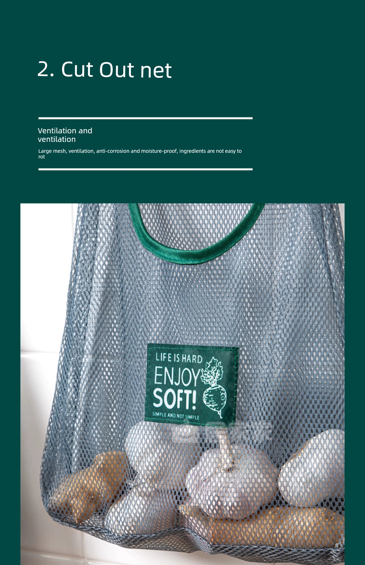 Jujiajia Kitchen Multifunctional Hanging Bag Dishes Storage Mesh Bag Hanging Portable Breathable Storage Garlic Pocket Storage Bag