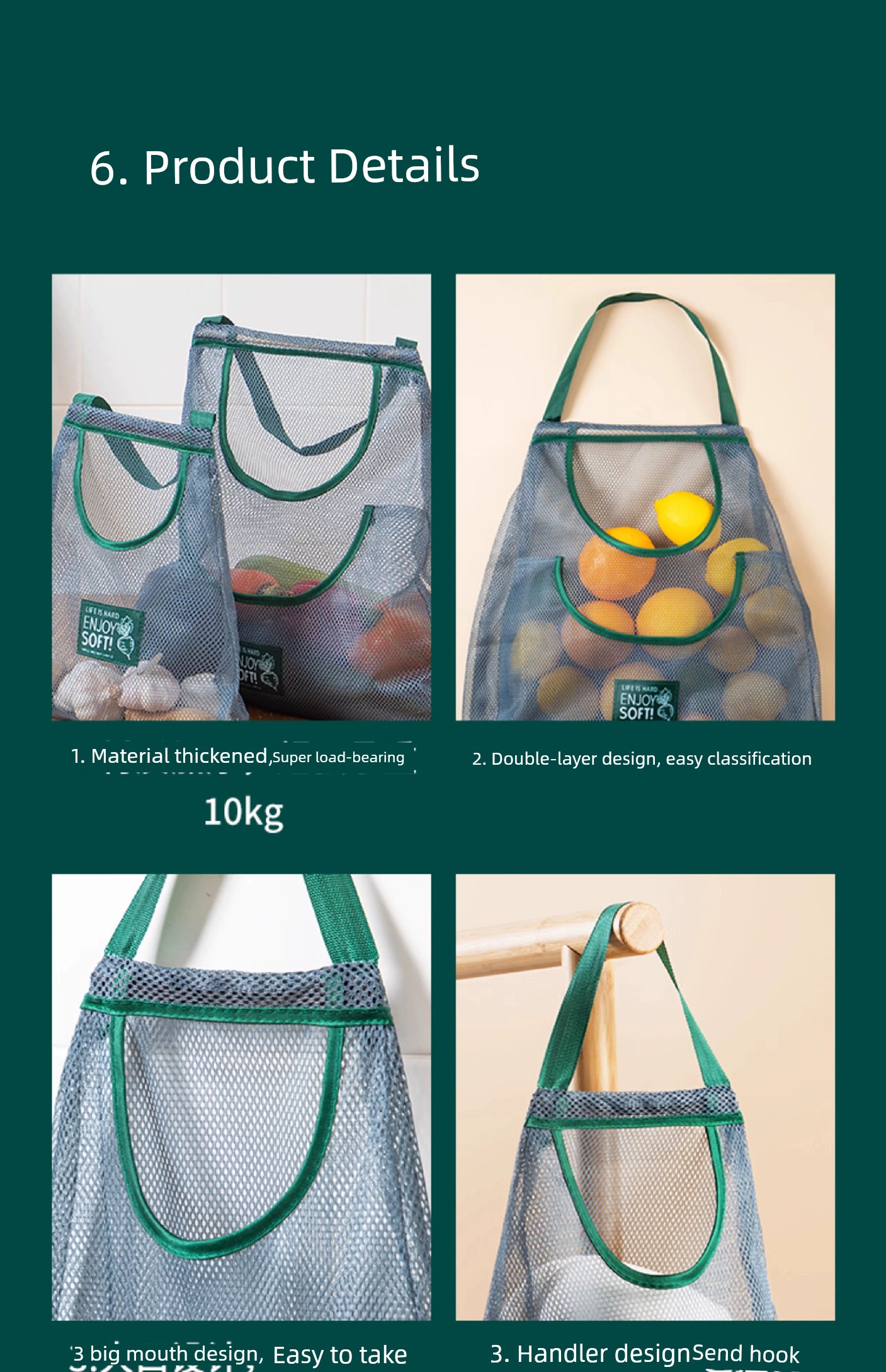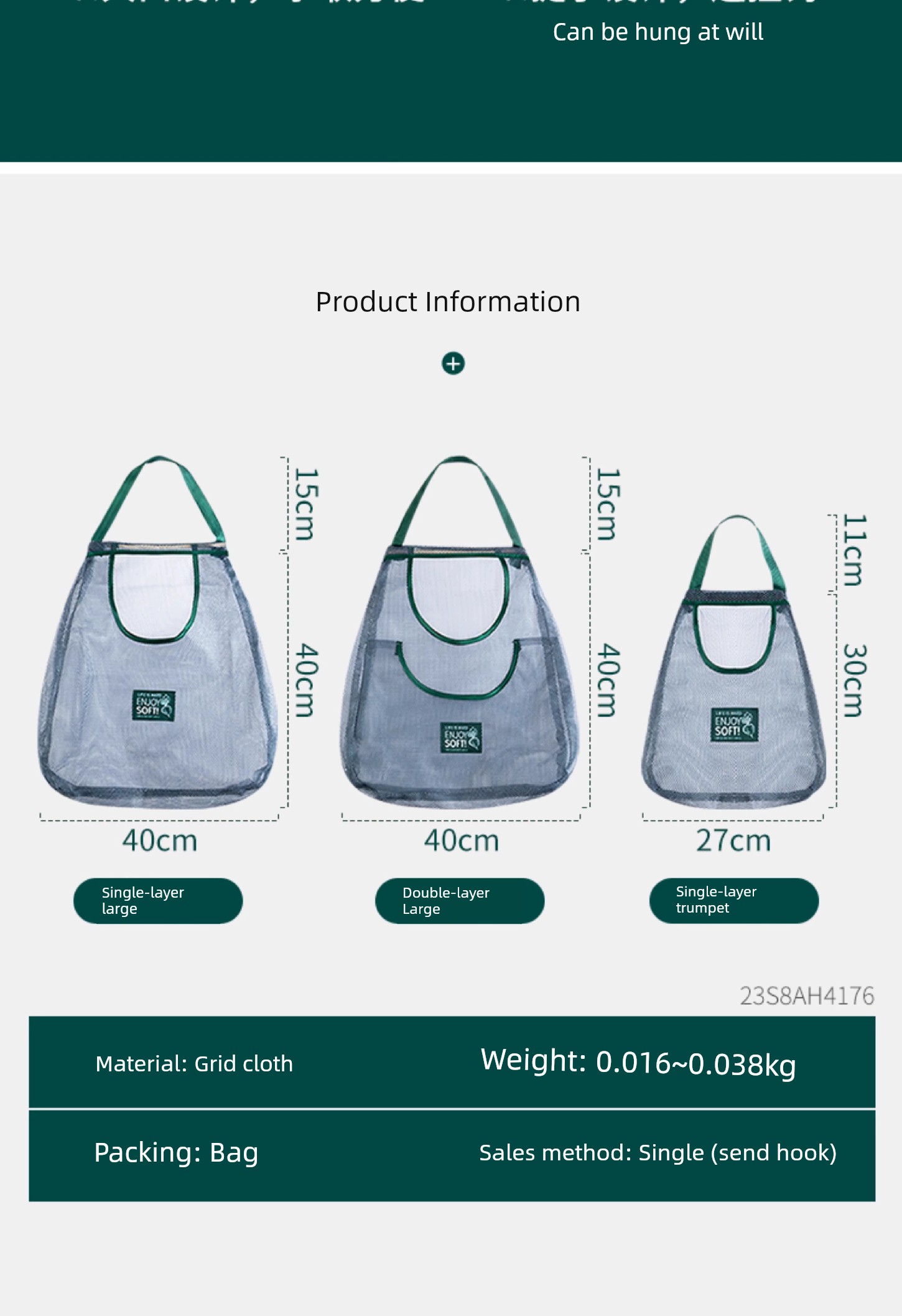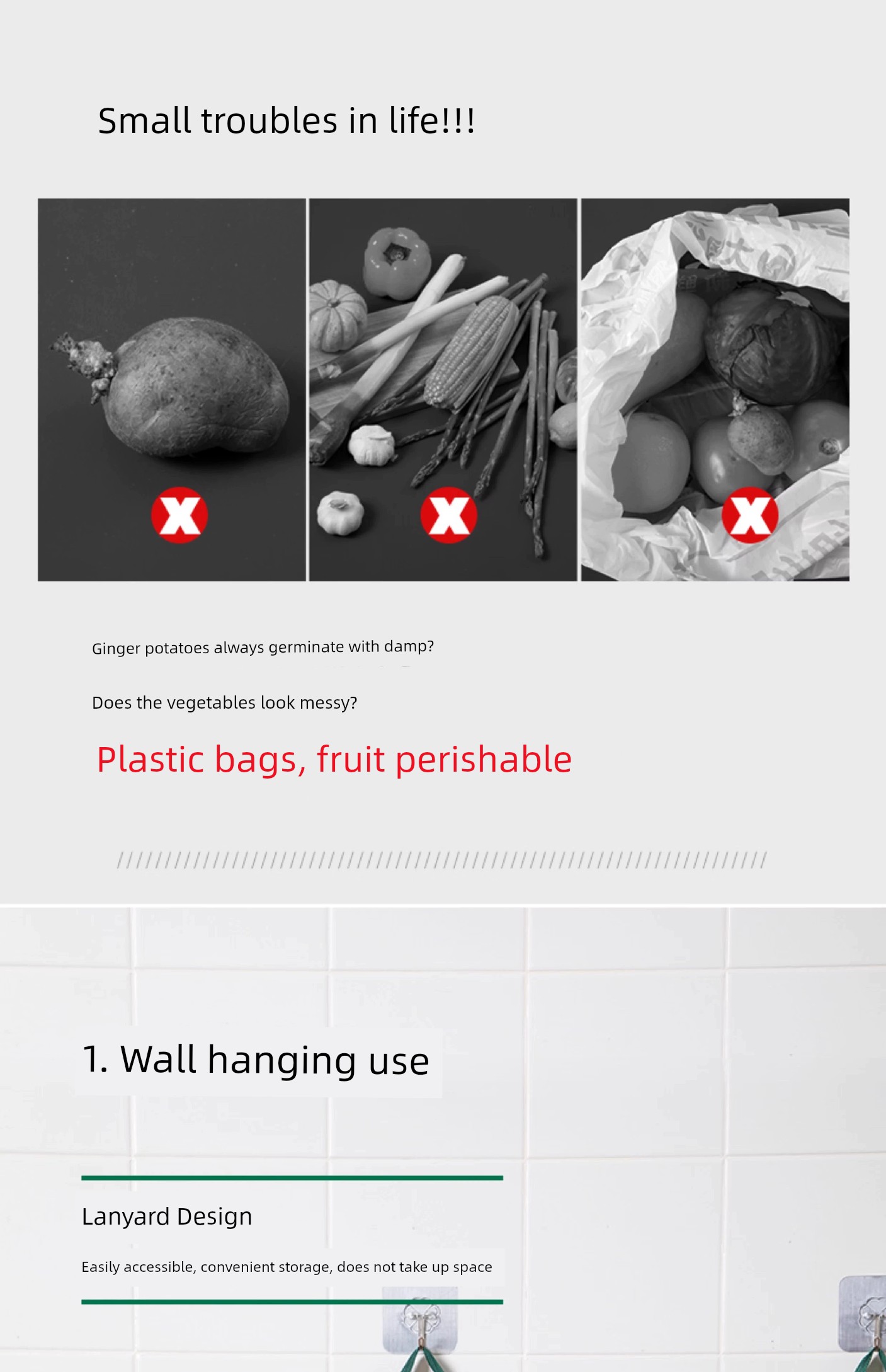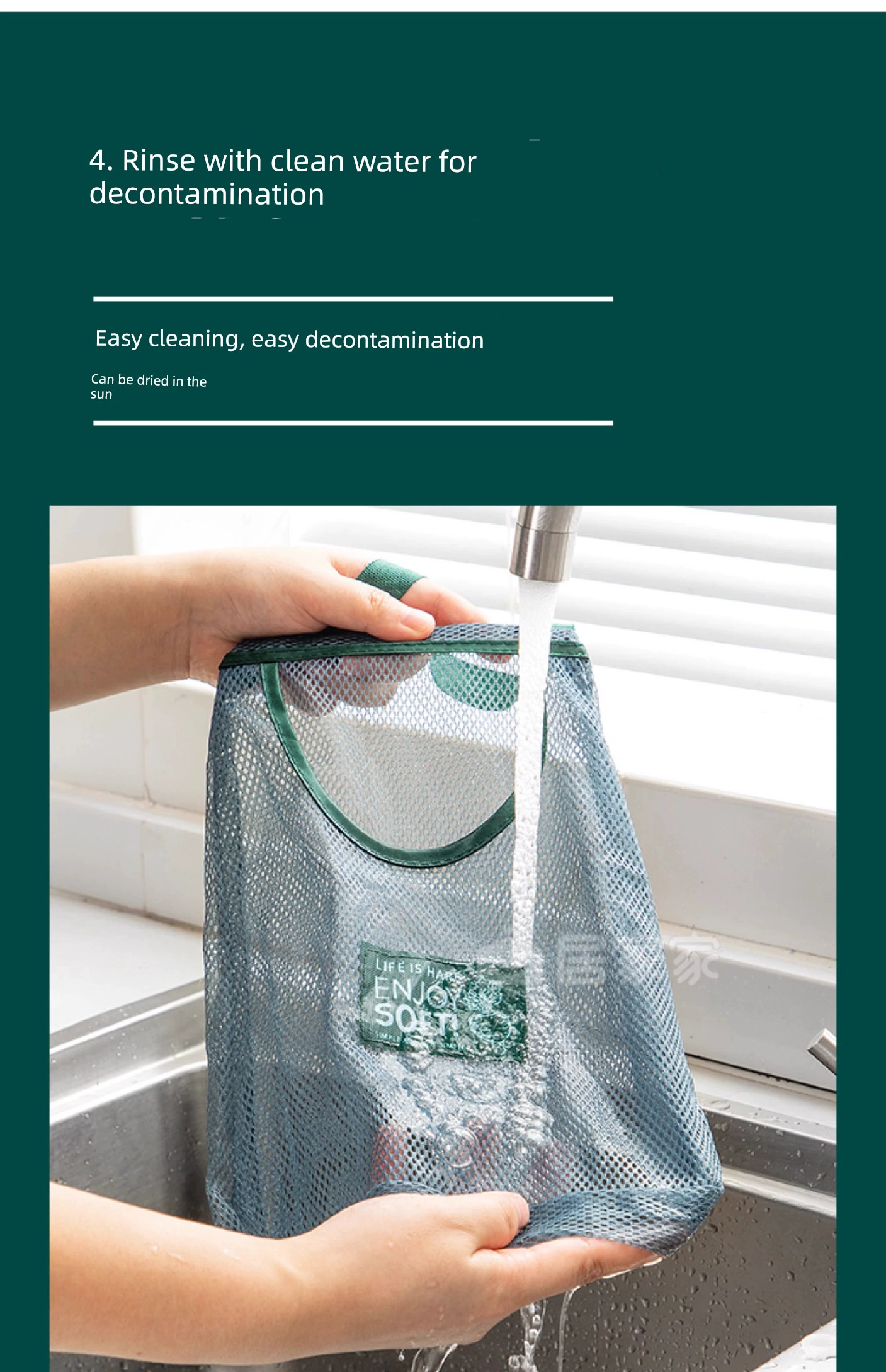 Jujiajia Kitchen Multifunctional Hanging Bag Dishes Storage Mesh Bag Hanging Portable Breathable Storage Garlic Pocket Storage Bag