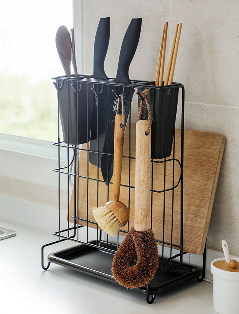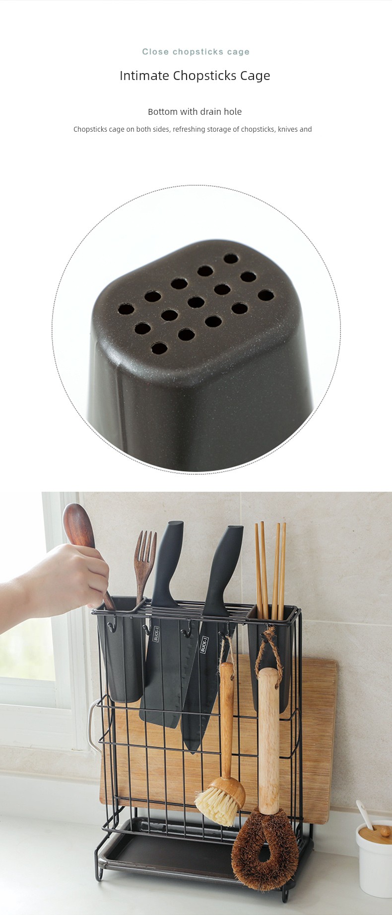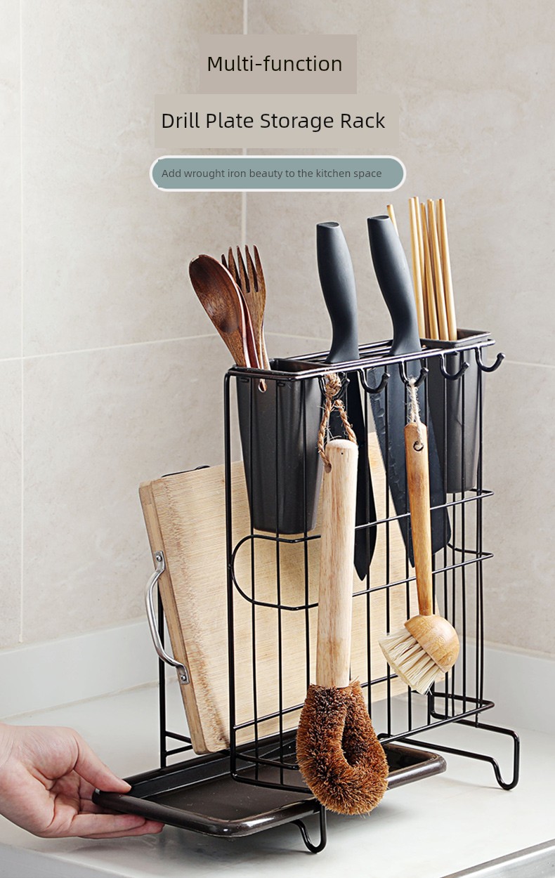 Jujiajia Knife Rack Cutting Board Integrated Storage Rack Cutting Board Chopsticks Spoon Kitchen Tableware Multi-Functional Storage Rack Draining Rack