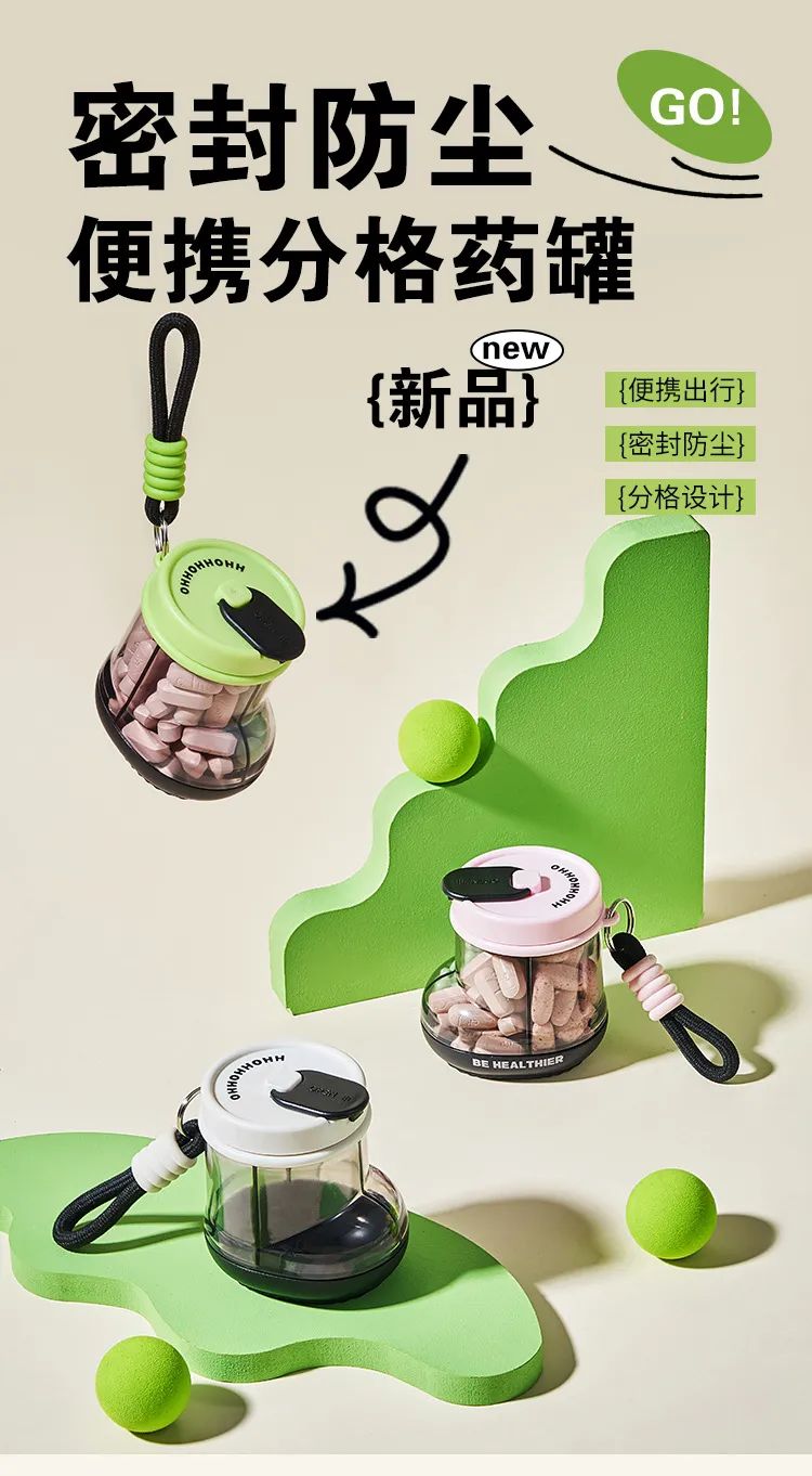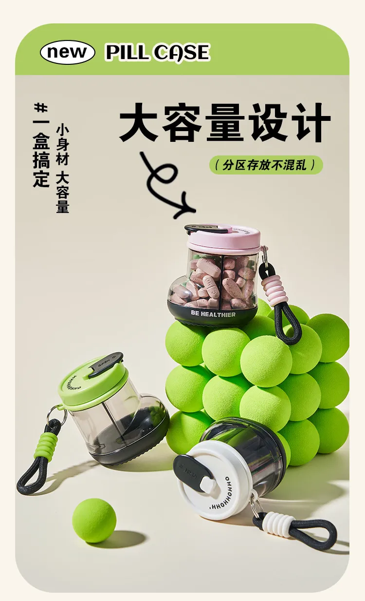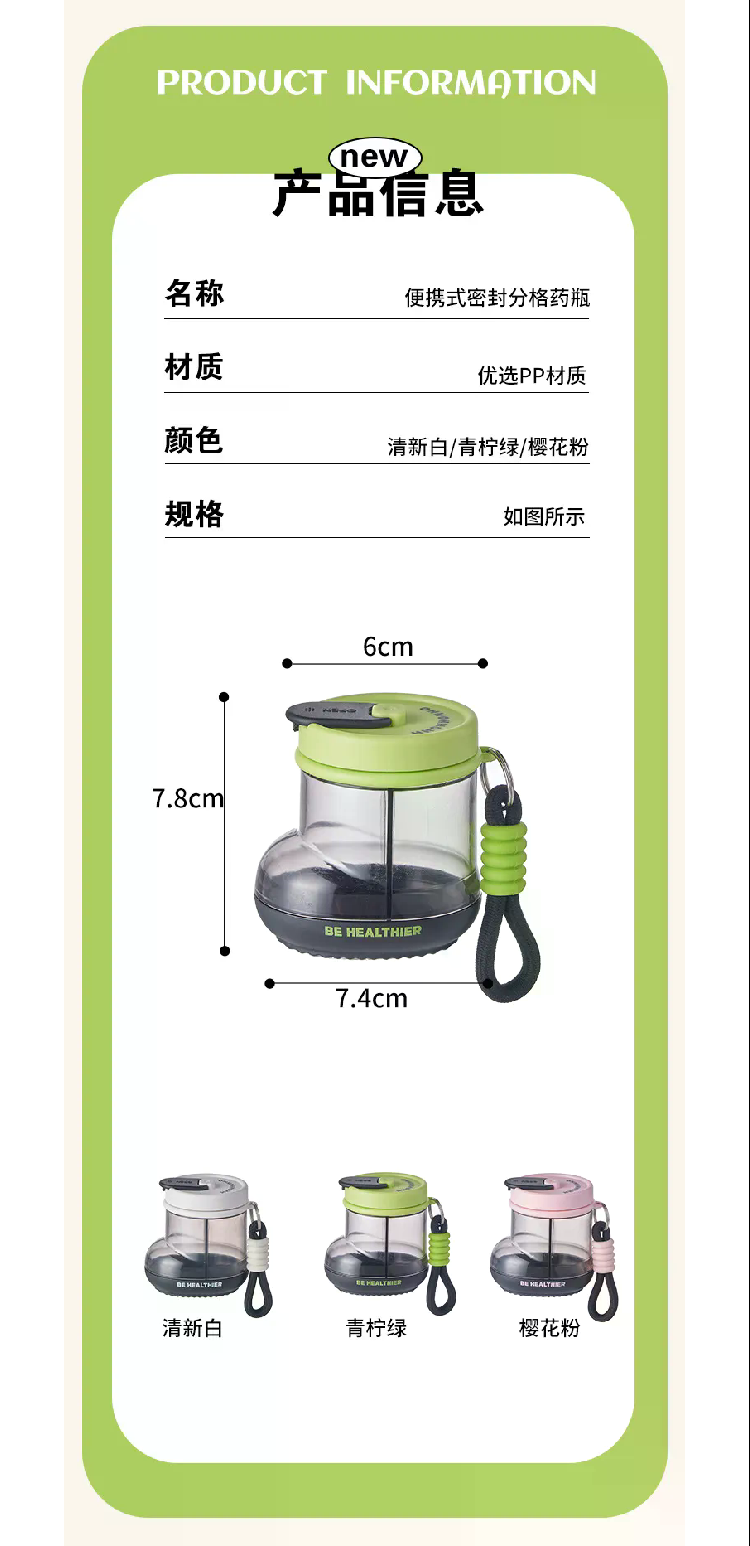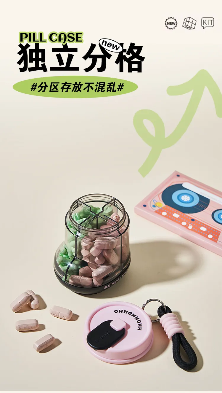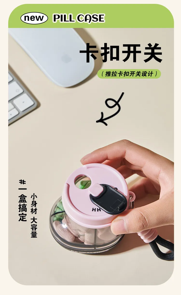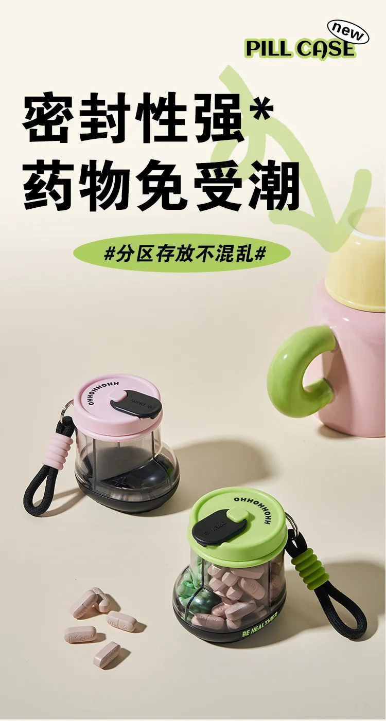 Jujiajia Medicine Box Portable Dispensing Carry around Seven Days a Week Pill Storage Box Sealed Moisture-Proof Mini Exquisite