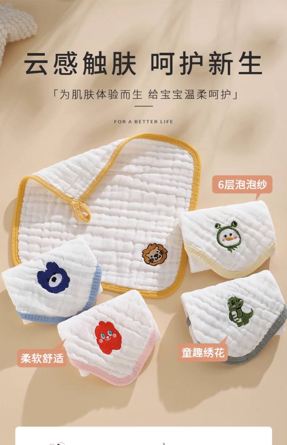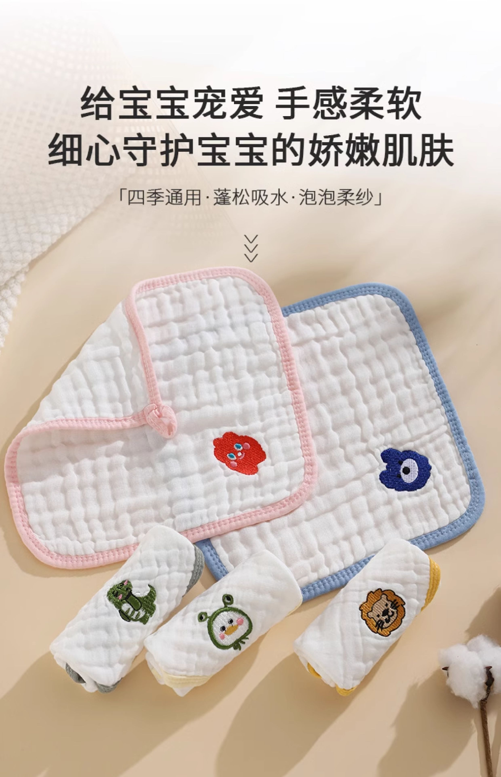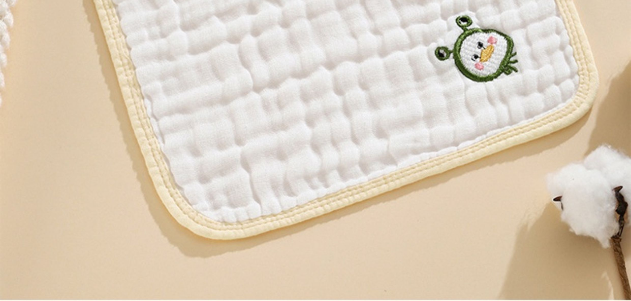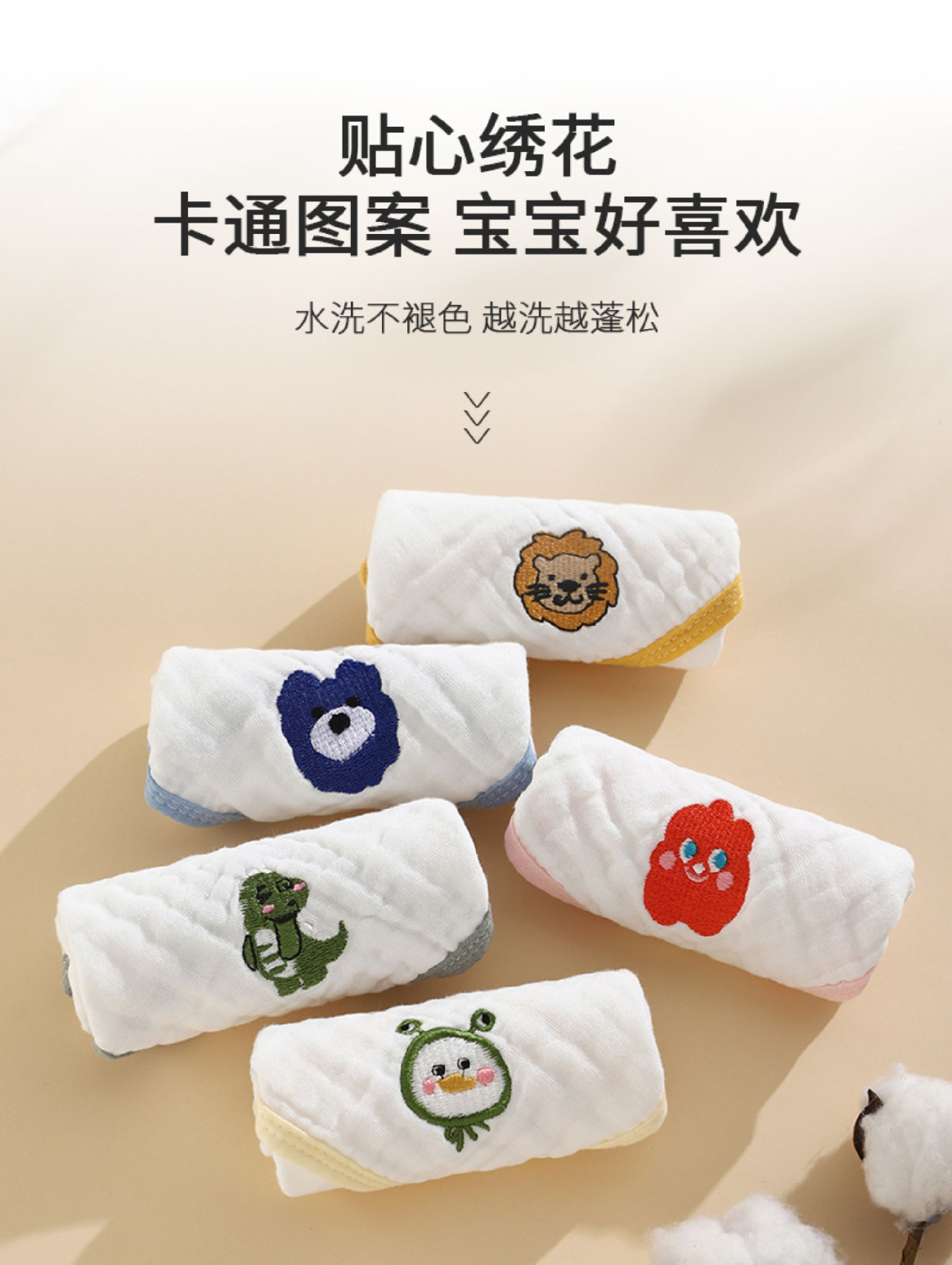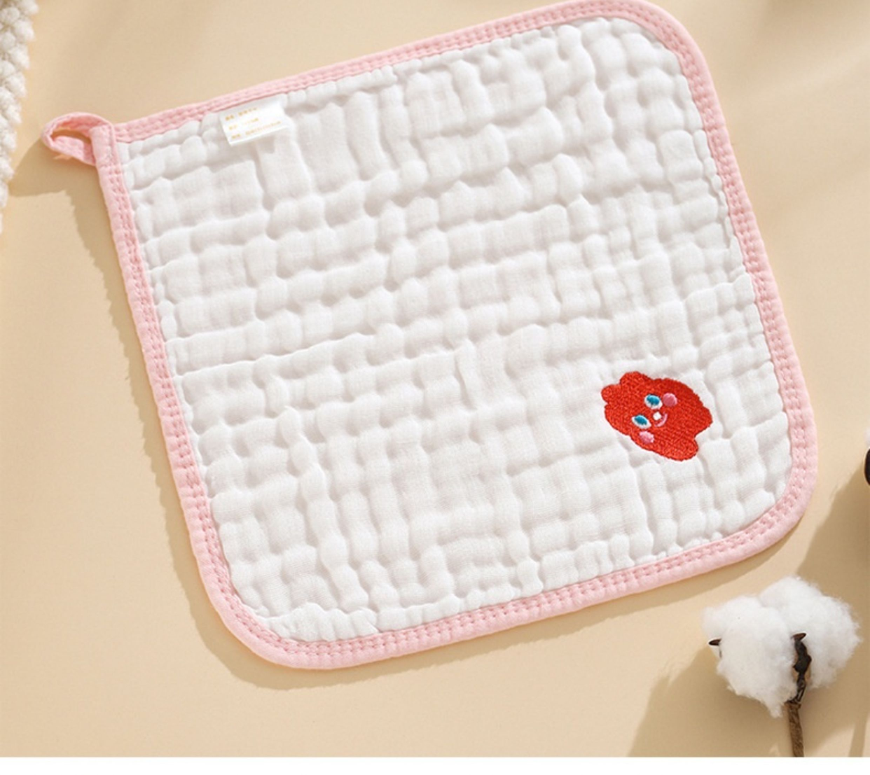 Jujiajia Pure Cotton Six-Layer Gauze Embroider Kerchief for Babies Class Small Tower Newborn Children's Saliva Towel Soft and Absorbent