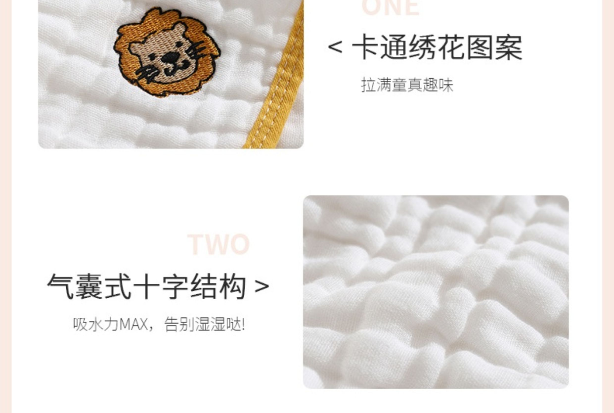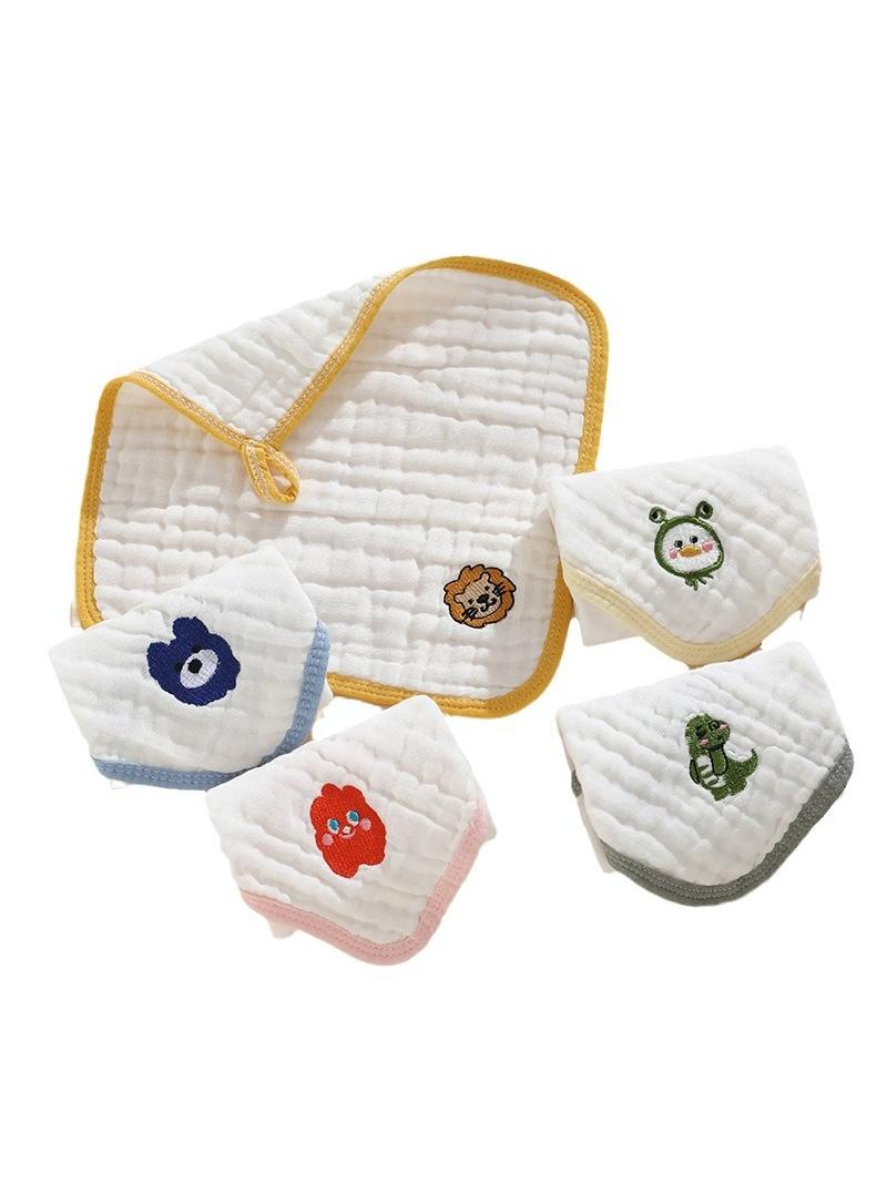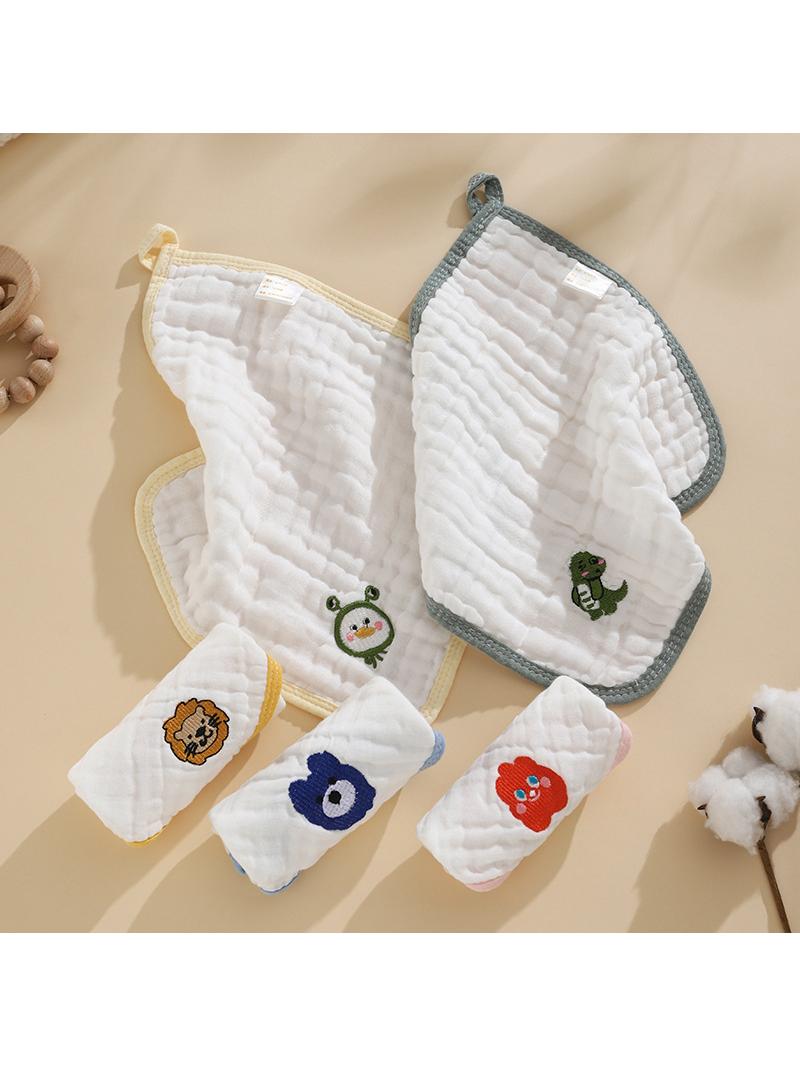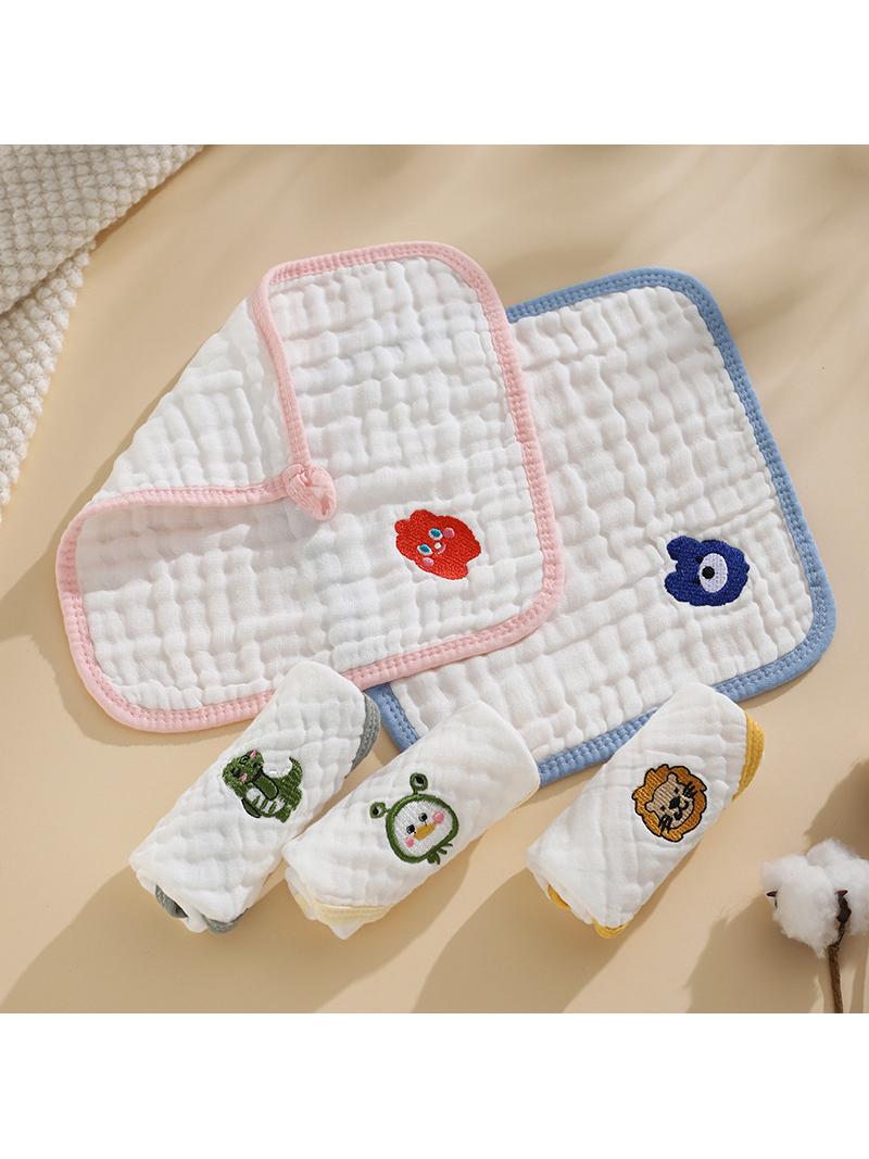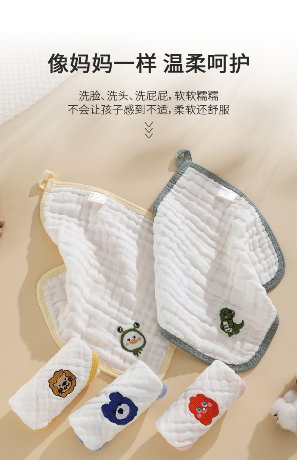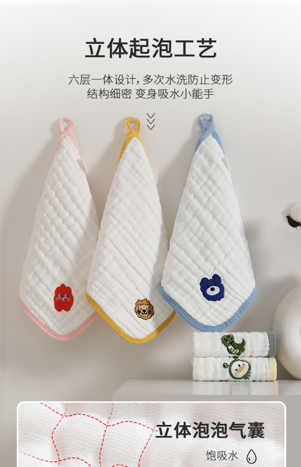 Jujiajia Pure Cotton Six-Layer Gauze Embroider Kerchief for Babies Class Small Tower Newborn Children's Saliva Towel Soft and Absorbent