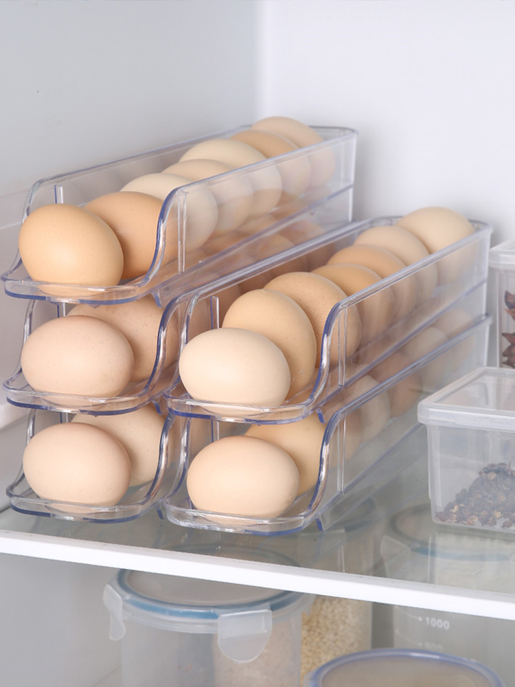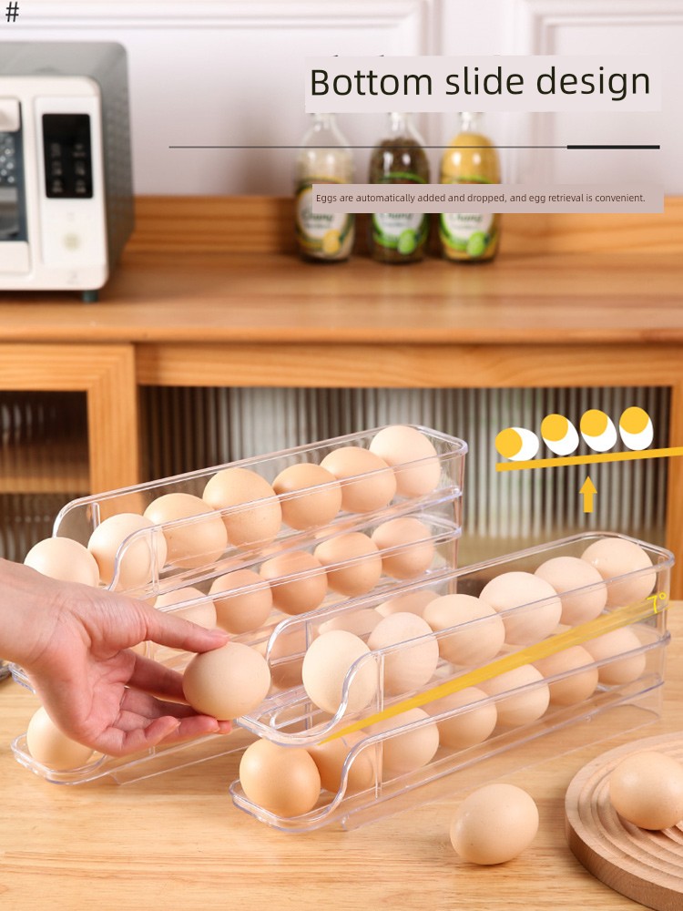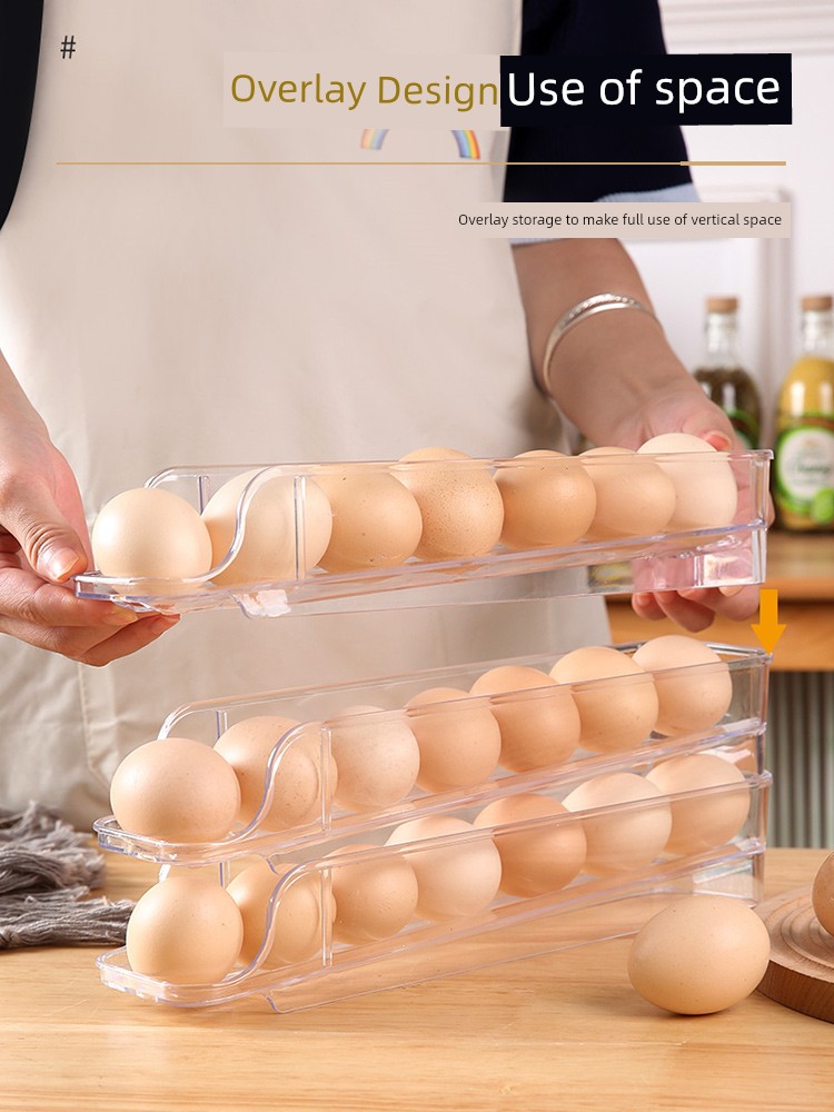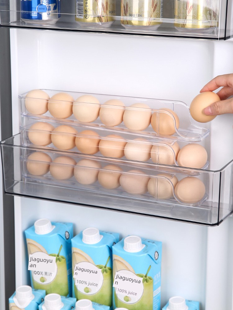 Jujiajia Rolling Egg Storage Box Refrigerator Side Door inside Automatic Egg Rack Kitchen Storage Handy Gadget