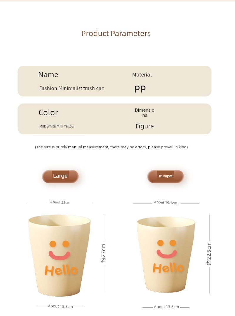 Jujiajia Simple Trash Can For Home Living Room and Kitchen Bedroom Small Size Storage Bucket Office Bathroom Wastebasket