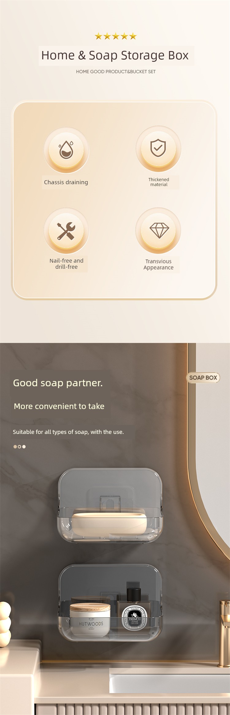 Jujiajia Soap Dish For Home Bathroom Wall-Mounted Moisture-Proof Storage Rack Thickened Double-Layer Draining Removable Soap Box